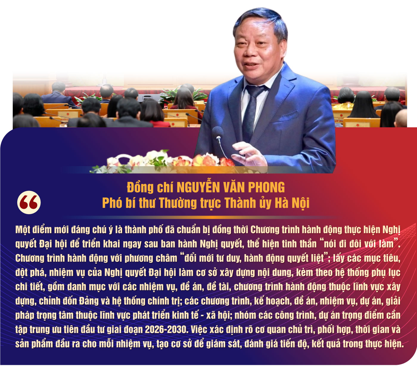Đồng chí Nguyễn Văn Phong, Phó bí thư Thường trực Thành ủy Hà Nội: Đảng bộ, chính quyền và nhân dân Thủ đô đang chủ động triển khai đồng bộ hệ thống giải pháp để đưa Nghị quyết Đại hội đi vào cuộc sống.