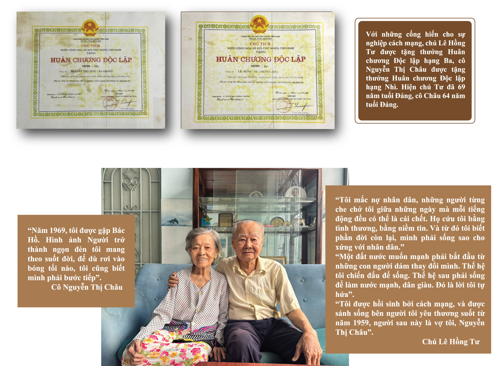 Về phần mình, cô Phan Thị Bé Tư, cựu tù chính trị Côn Đảo, bộc bạch: “Chúng tôi ai cũng có tuổi trẻ, cũng có những rung động lứa đôi nhưng trên hết là Tổ quốc. Biết chuyện anh Tư và chị Châu yêu nhau trong chốn ngục tù, chúng tôi không chỉ ngưỡng mộ mà còn thấy mình có thêm sức mạnh, niềm tin để sống, để chiến đấu”.