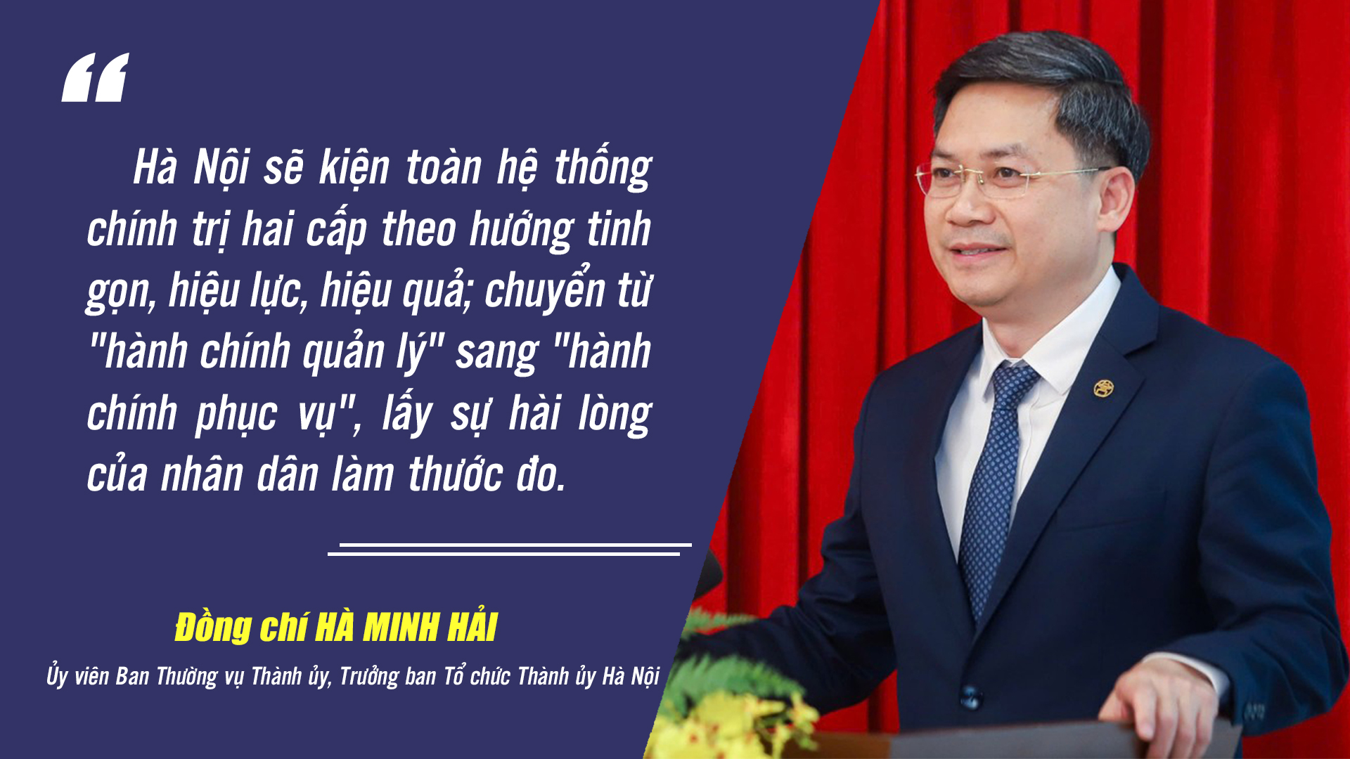 Sau 5 tháng triển khai mô hình chính quyền địa phương hai cấp, Hà Nội đang cho thấy bước chuyển mạnh mẽ từ tư duy “quản lý” sang “quản trị”, từ điều hành hành chính sang kiến tạo, phục vụ. Mặc dù có những việc chưa từng có trong tiền lệ và nhiều việc phải làm, tuy nhiên, sự đổi thay sâu rộng trong tổ chức bộ máy, phương thức lãnh đạo, phương pháp làm việc cùng những kết quả đạt được là rất đáng ghi nhận. Từ các phường nội đô đến những xã ngoại thành, từ hành chính công đến chuyển đổi số, từ phân cấp, ủy quyền đến trách nhiệm giải trình, Hà Nội đang đẩy nhanh hiện thực hóa yêu cầu của Trung ương về kiến tạo một mô hình quản trị hiện đại. Đây cũng là bài học kinh nghiệm giúp Hà Nội hoàn thiện sắp xếp 526 xã, phường, thị trấn còn 126 xã, phường với mô hình mới hiện đại, bảo đảm tinh gọn, hiệu lực, hiệu quả, gần dân, không gián đoạn hoạt động quản lý Nhà nước.