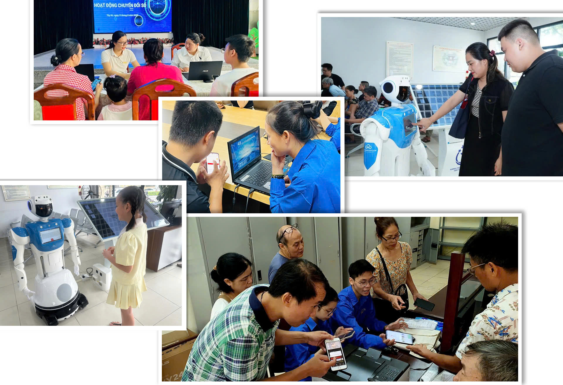 Để nâng cao năng lực số cho đội ngũ cán bộ, công chức, nhiều lớp học chuyển đổi số được tổ chức, như: các lớp tập huấn trực tiếp và online, cũng như mở các nhóm Zalo để các cán bộ, công chức chia sẻ kinh nghiệm thực hiện nhiệm vụ trong môi trường số tại phướng Phú Thượng; đầu tư tài khoản trợ lý ảo, mời chuyên gia tư vấn hỗ trợ như tại xã Minh Châu; robot AI tại phường Cửa Nam...