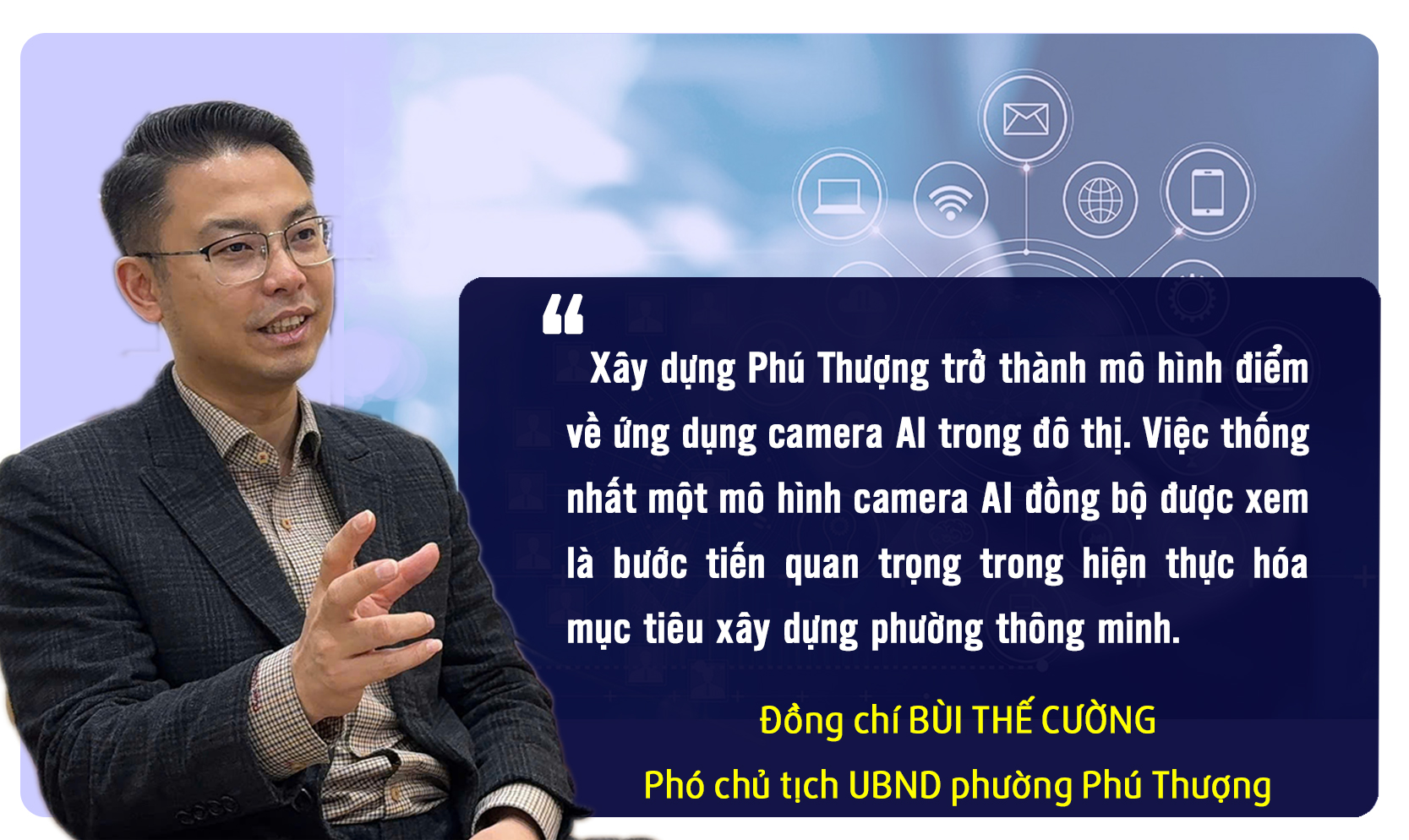 Những đổi mới tại Minh Châu cho thấy xu hướng chuyển đổi mạnh mẽ đang lan rộng, trong đó phường Phú Thượng cũng là một điểm sáng với nhiều giải pháp công nghệ đồng bộ. Phó chủ tịch UBND phường Phú Thượng Bùi Thế Cường cho biết phường xây dựng mô hình thông minh dựa trên ba trụ cột: Chính quyền số - Kinh tế số - Xã hội số.