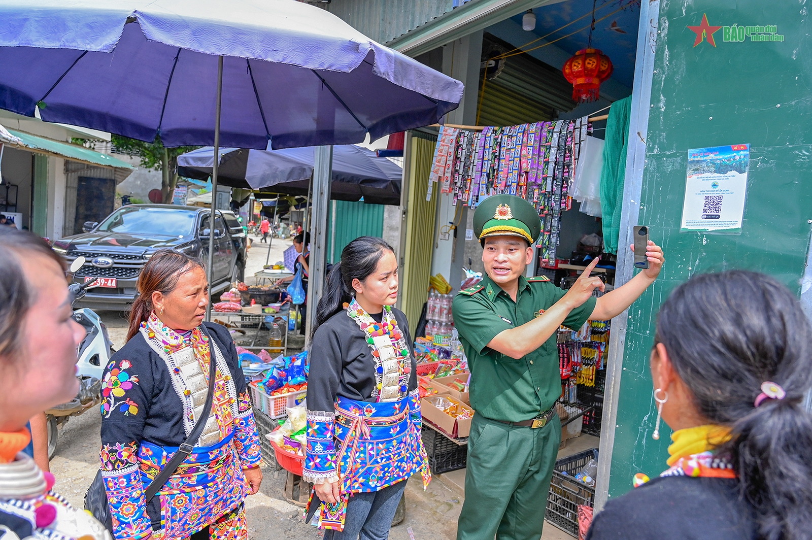 Cán bộ Đồn Biên phòng Vàng Ma Chải (Ban chỉ huy Bộ đội Biên phòng tỉnh Lai Châu) hướng dẫn người dân quét mã QR hòm thư điện tử ẩn danh tố giác tội phạm.