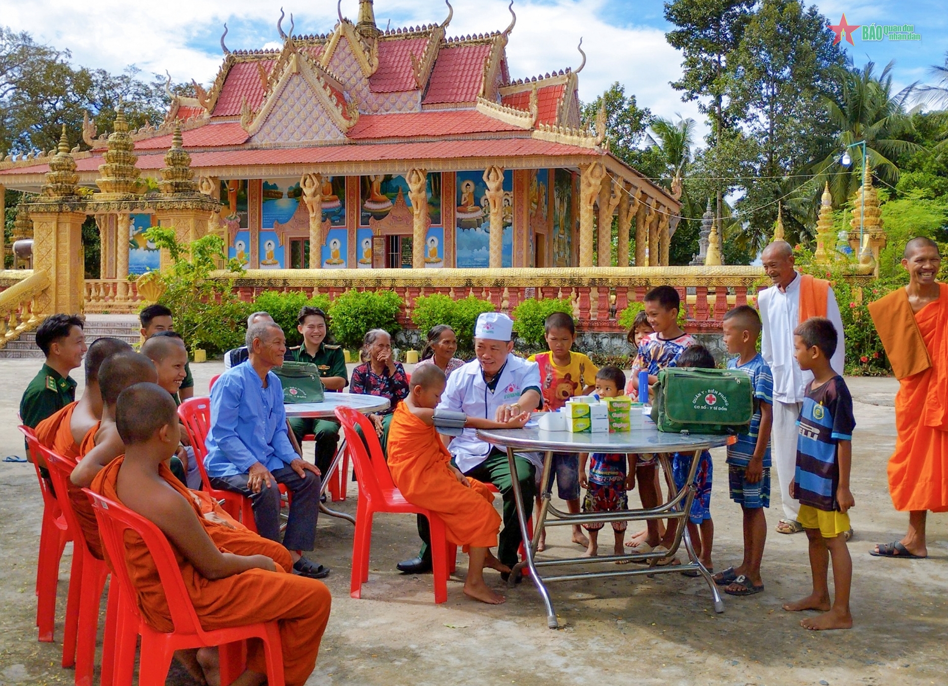 Lực lượng quân y của Bộ đội Biên phòng tỉnh An Giang khám bệnh cho các vị sư, đồng bào dân tộc Khmer tại các chùa trên khu vực biên giới.