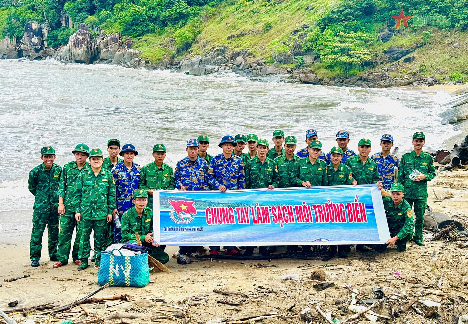 Chi đoàn Đồn Biên phòng Hòn Khoai (Ban chỉ huy Bộ đội Biên phòng tỉnh Cà Mau) phối hợp ra quân làm sạch môi trường biển.