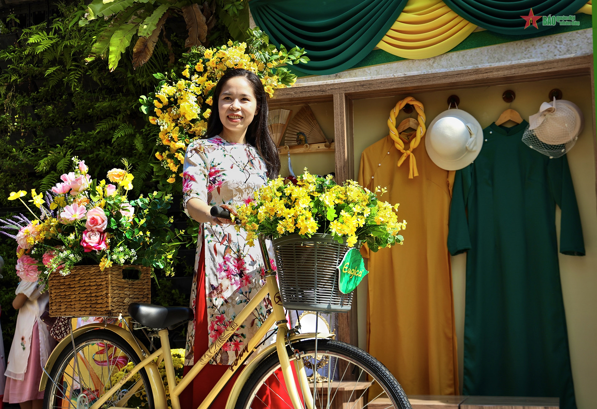 Khu vực trang trí áo dài truyền thống thu hút nhiều người chụp ảnh lưu niệm ngày xuân.