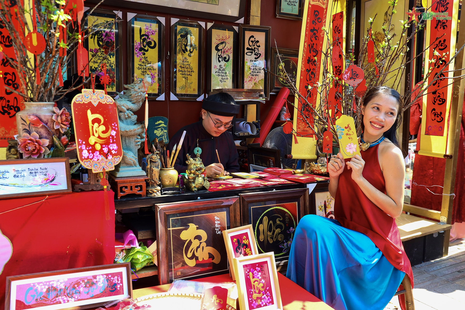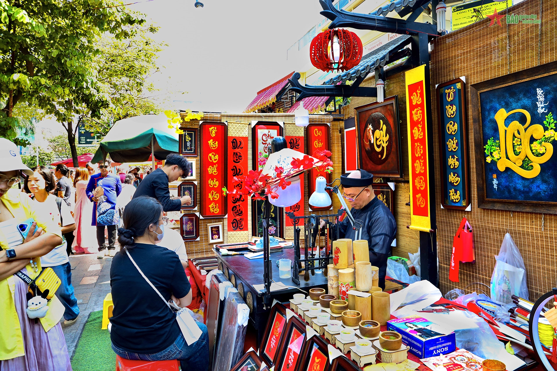 Phố Ông đồ năm nay có hơn 20 gian hàng, bày biện câu đối và thư pháp chúc Tết, thu hút đông đảo người dân và du khách.