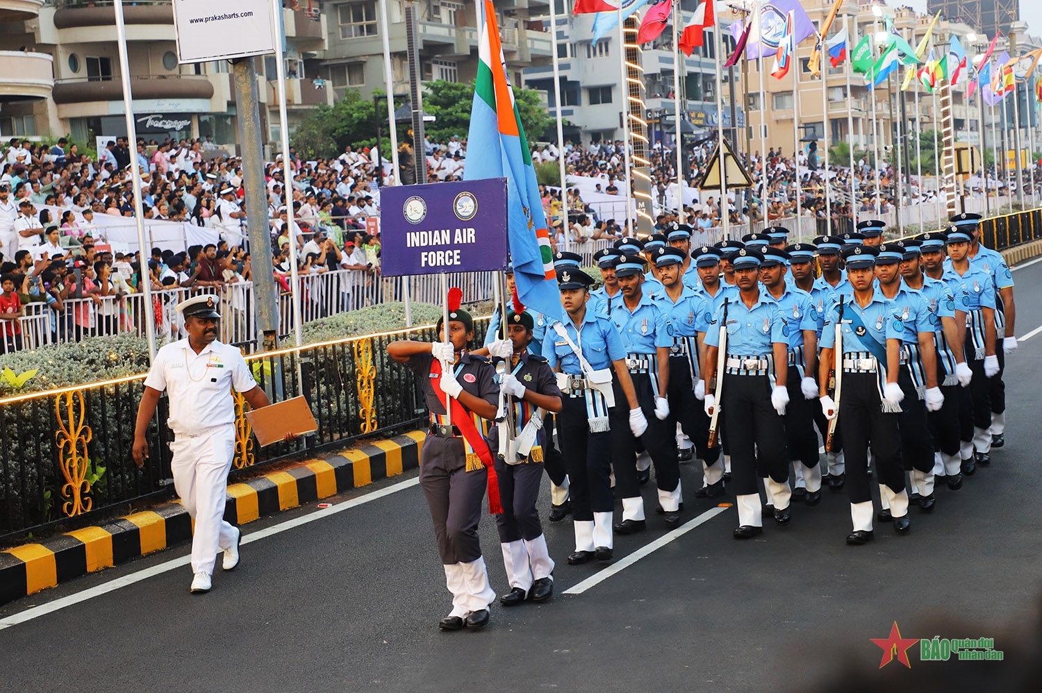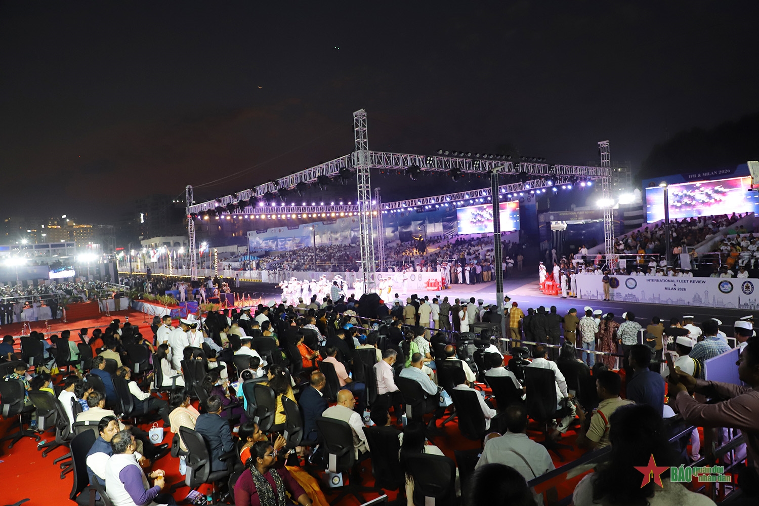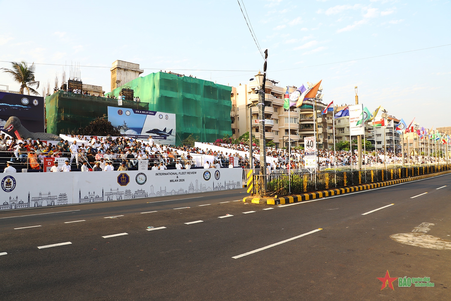 Nằm trong khuôn khổ các hoạt động tại bến của Diễn tập MILAN 2026, chiều 19-2, tại khu vực bờ biển thành phố Visakhapatnam, Ấn Độ, Lễ diễu binh quốc tế được tổ chức long trọng bởi màn trình diễn sức mạnh không quân và Lễ diễu binh đường phố, đậm đà bản sắc văn hóa.