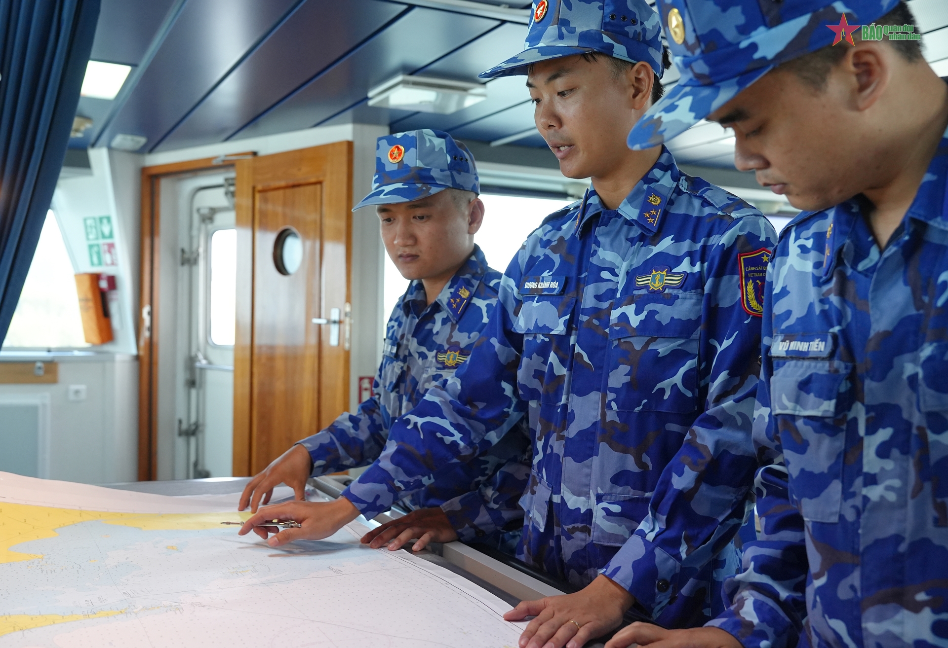 Các cán bộ, chiến sĩ tác nghiệp trên hải đồ.