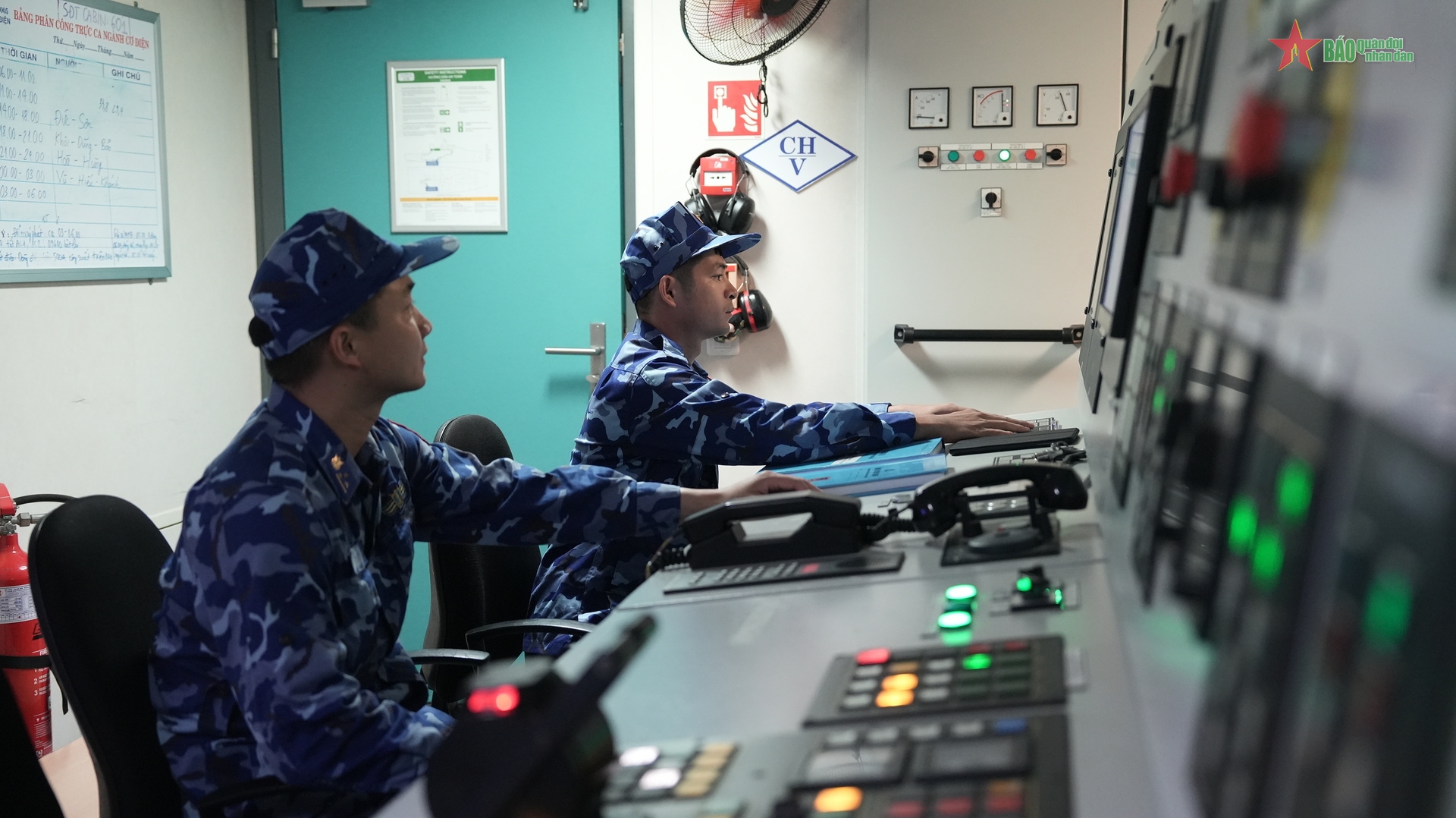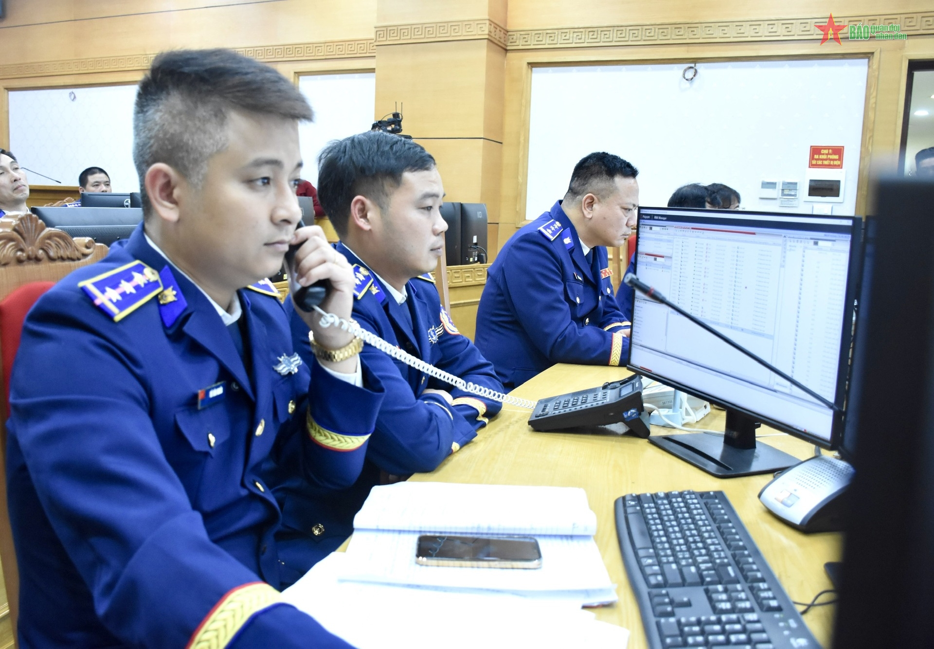 Trung tâm Chỉ huy Bộ tư lệnh Cảnh sát biển nghe báo cáo của các tàu trực qua điện thoại.