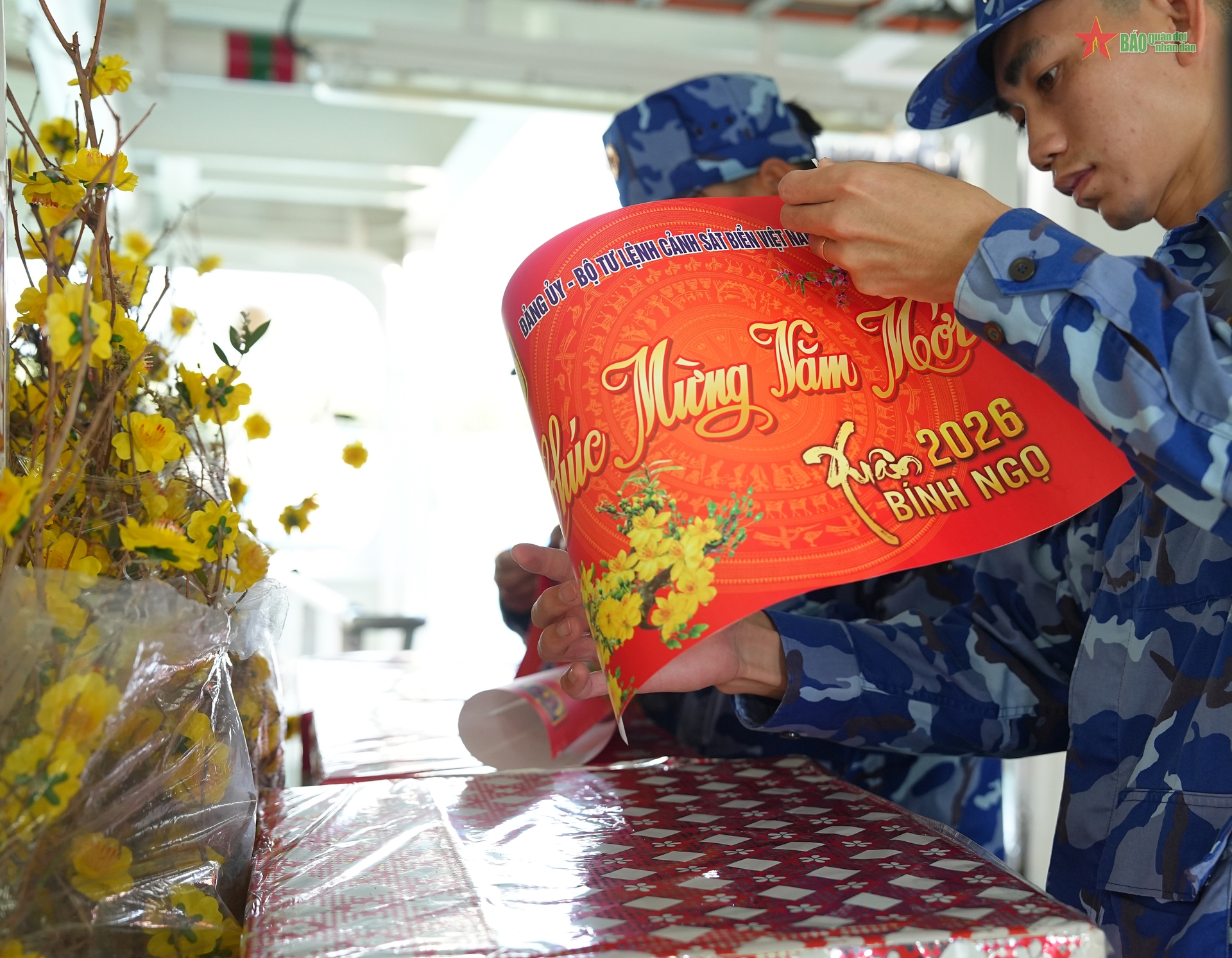 Trong khoang tàu, cành mai vàng, cặp bánh chưng xanh được chuẩn bị giản dị mà đậm nghĩa tình. Giữa tiếng sóng vỗ và những mệnh lệnh dứt khoát từ Sở chỉ huy, cán bộ, chiến sĩ vừa đón xuân trong tình đồng chí, đồng đội, vừa chắc tay súng, vững tay lái thực hiện nhiệm vụ tuần tra, kiểm tra, kiểm soát trên biển.