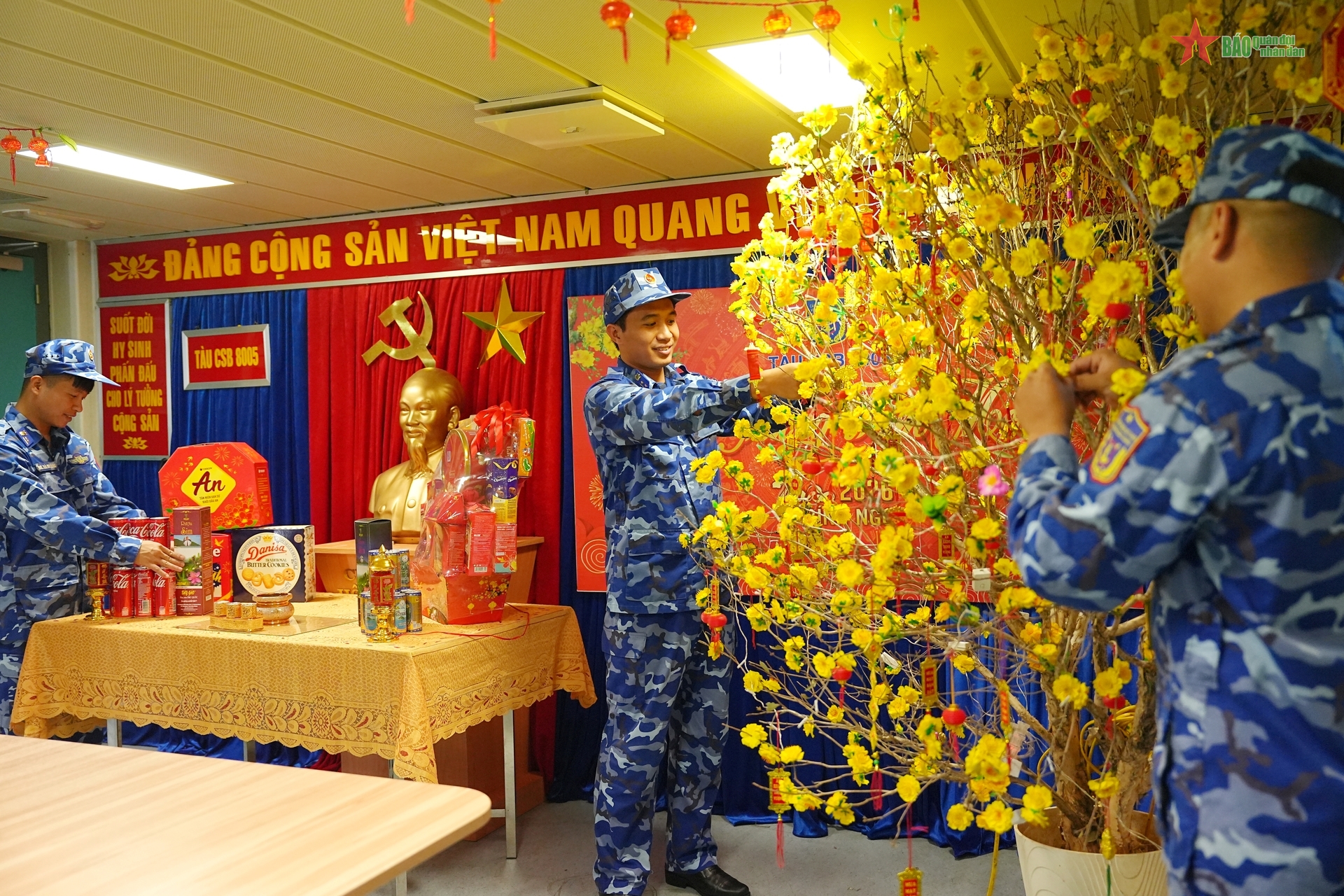 Trên tàu CSB 8005, phòng đón xuân được trang trí giản dị mà ấm cúng.