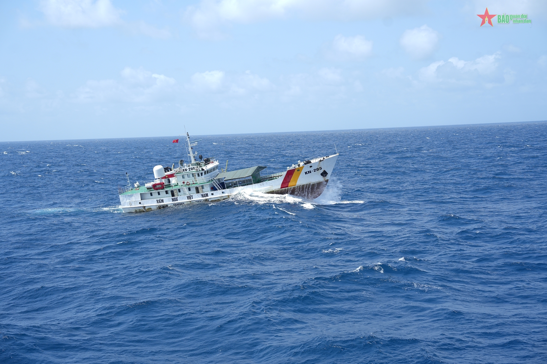 Tàu KN-205 thực hiện nhiệm vụ trực sẵn sàng chiến đấu trong điều kiện sóng cấp 5, cấp 6 và biển động mạnh.