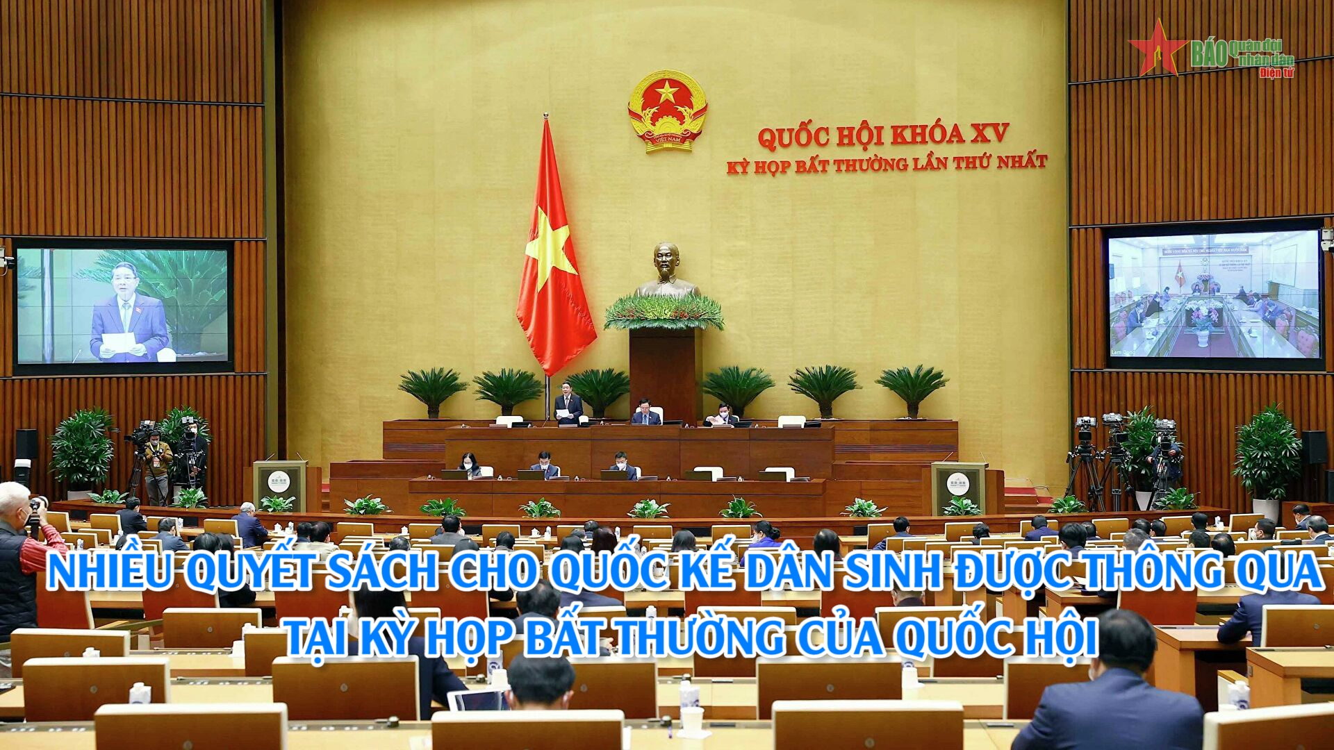 Kỳ họp bất thường lần thứ nhất, Quốc hội khóa XV chính thức bế mạc vào 11-1 sau 8 ngày làm việc. Kỳ họp lần này đã đưa ra những quyết sách kịp thời cho quốc kế dân sinh, góp phần khôi phục, phát triển kinh tế - xã hội.