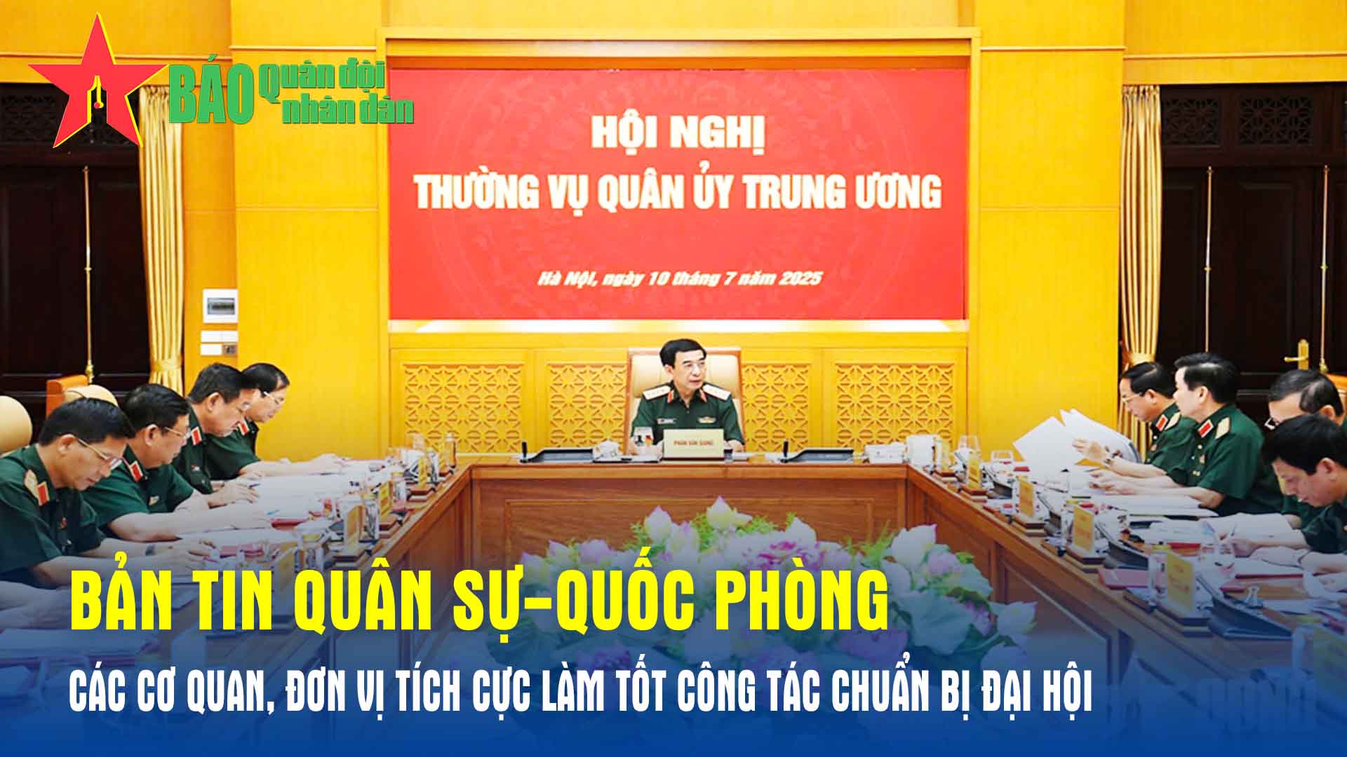 Nội dung chính: Thường vụ Quân ủy Trung ương thông qua các dự thảo văn kiện Đại hội Đảng bộ Quân đội lần thứ XII; Thượng tướng Trịnh Văn Quyết chủ trì Hội nghị Sơ kết nhiệm vụ Cơ quan Tổng cục Chính trị 6 tháng đầu năm 2025; Đại tướng Nguyễn Tân Cương chủ trì hội nghị Quân chính 6 tháng đầu năm của Bộ Tổng Tham mưu...