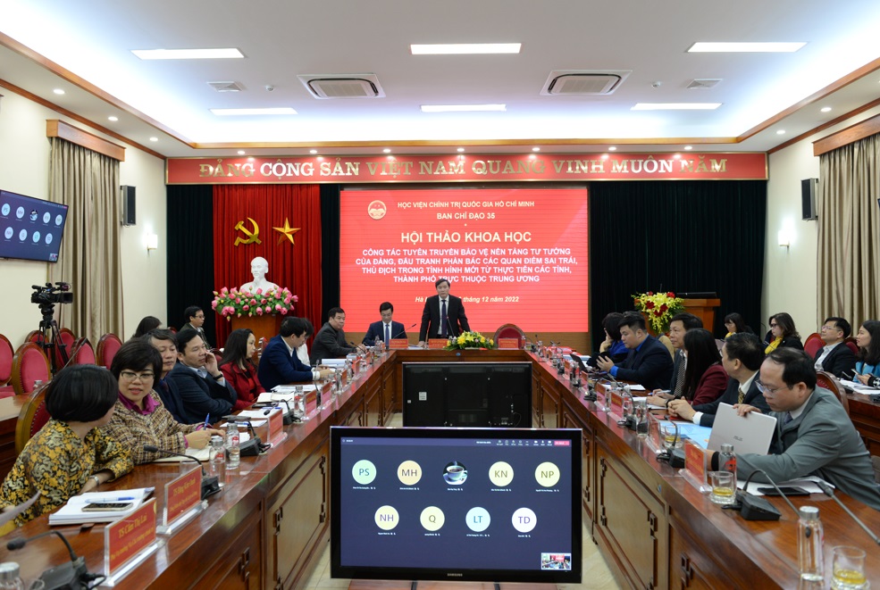 Chiều 26-12, tại Hà Nội, Học viện Chính trị Quốc gia Hồ Chí Minh tổ chức Hội thảo khoa học “Công tác tuyên truyền bảo vệ nền tảng tư tưởng của Đảng, đấu tranh phản bác các quan điểm sai trái, thù địch trong tình hình mới từ thực tiễn các tỉnh, thành phố trực thuộc Trung ương”.