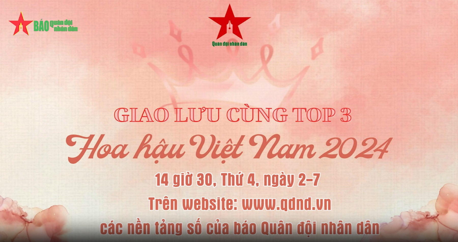 Cùng Báo Quân đội nhân dân giao lưu, gặp gỡ trực tuyến với Hãy cùng gặp gỡ và trò chuyện với Top 3 Hoa hậu Việt Nam 2024: Hoa hậu Hà Trúc Linh, Á hậu 1 Trần Ngọc Châu Anh và Á hậu 2 Nguyễn Thị Vân Nhi, vào 14h30 ngày 2-7 trên Báo Điện tử và các nền tảng số.