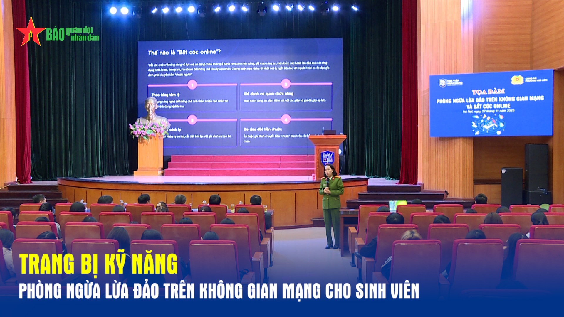 Ngày 27-11, Học viện Ngân hàng phối hợp với Công an phường Kim Liên tổ chức Tọa đàm với chủ đề "Phòng ngừa lừa đảo trên không gian mạng và bắt cóc online”.