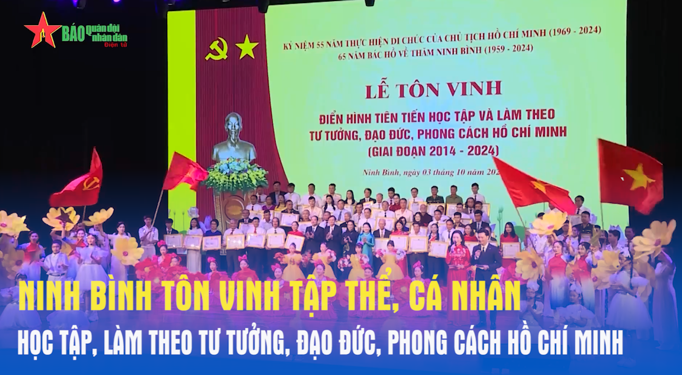 Sáng 3-10, nhân dịp kỷ niệm 55 năm thực hiện Di chúc của Chủ tịch Hồ Chí Minh (1969-2024) và 65 năm Ngày Bác Hồ về thăm Ninh Bình (1959-2024), Ban Tuyên giáo Tỉnh ủy Ninh Bình tổ chức Lễ tôn vinh Điển hình tiên tiến học tập và làm theo tư tưởng, đạo đức, phong cách Hồ Chí Minh.