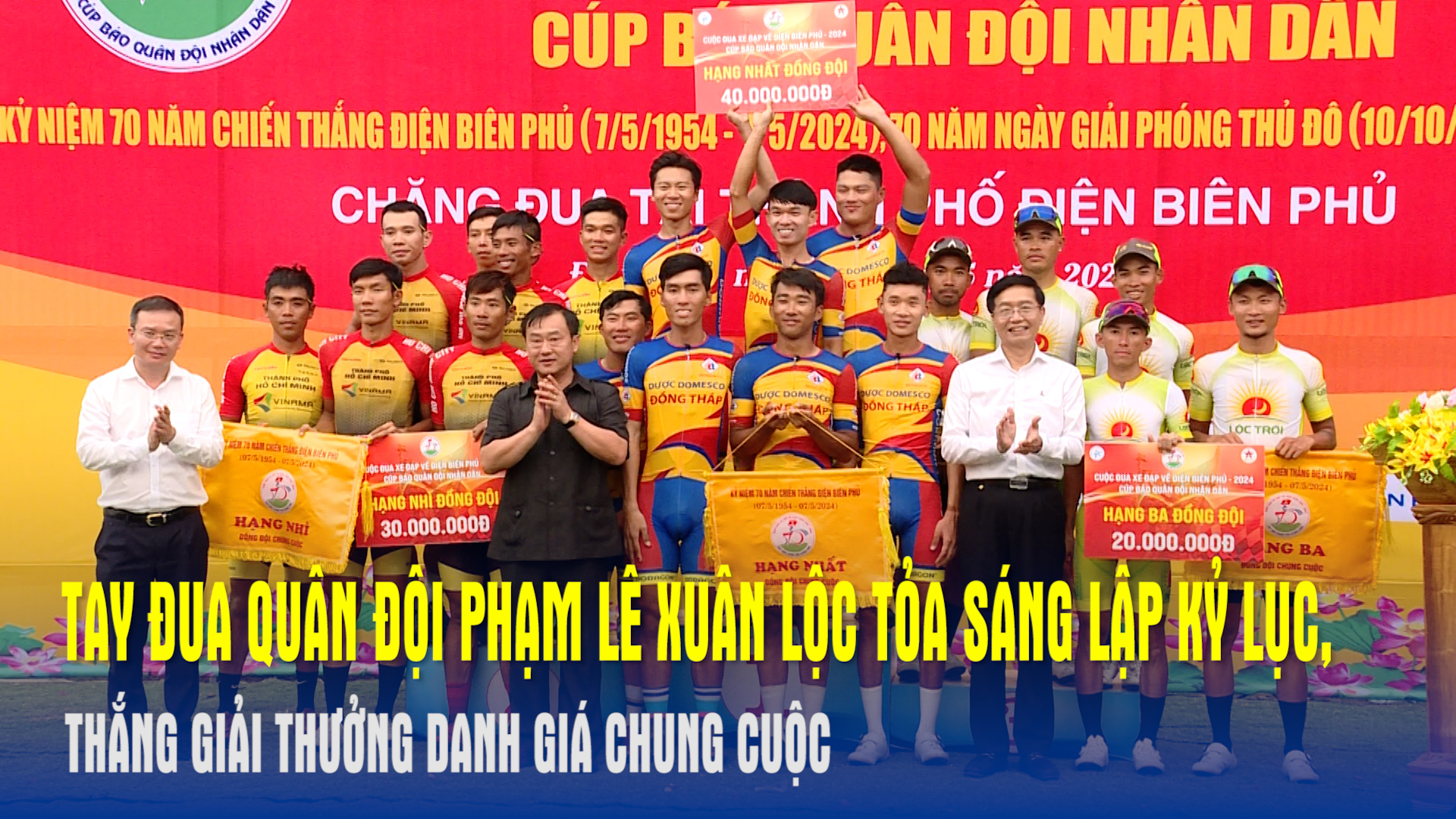 Kết thúc chặng đua thứ 5 Cuộc đua xe đạp “Về Điện Biên Phủ-2024, Cup Báo Quân đội nhân dân”, tuyển thủ Quân đội Phạm Lê Xuân Lộc lập nhiều thành tích xuất sắc, giành Áo vàng chung cuộc.