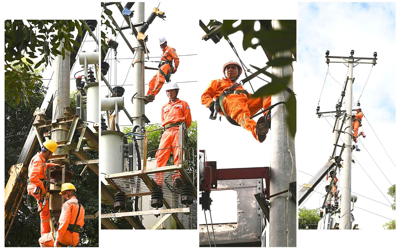 Trong ảnh: Đội quản lý điện lực khu vực Đoàn Kết thuộc Công ty điện lực tỉnh Lai Châu khắc phục xử lý xà trung gian tại bản Tả Làn Than, phường Tân Phong.