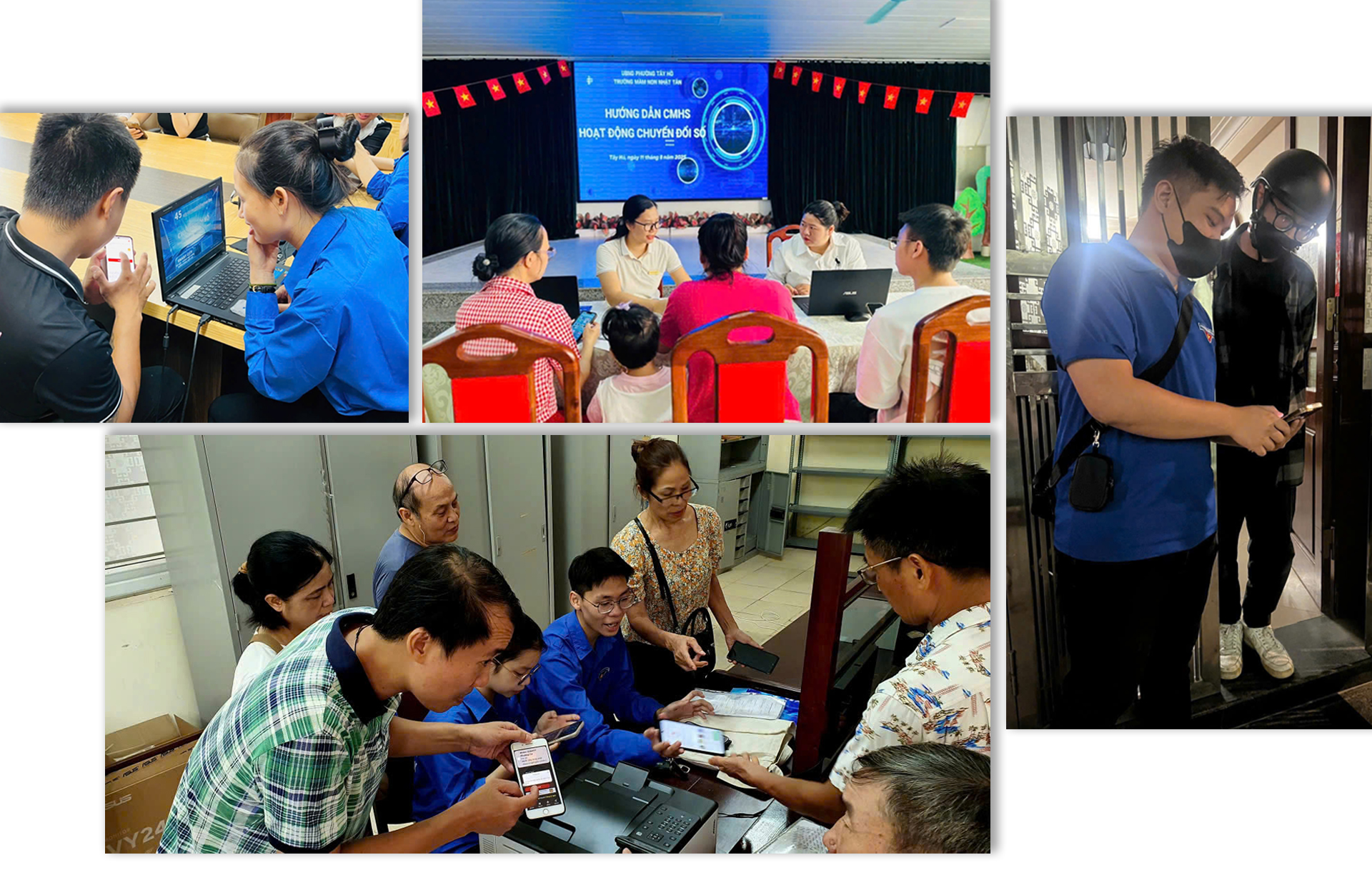 Để nâng cao năng lực số cho đội ngũ cán bộ, công chức, nhiều lớp học chuyển đổi số được tổ chức, như: các lớp tập huấn trực tiếp và online, cũng như mở các nhóm Zalo để các cán bộ, công chức chia sẻ kinh nghiệm thực hiện nhiệm vụ trong môi trường số tại phướng Phú Thượng; đầu tư tài khoản trợ lý ảo, mời chuyên gia tư vấn hỗ trợ như tại xã Minh Châu; robot AI tại phường Cửa Nam...