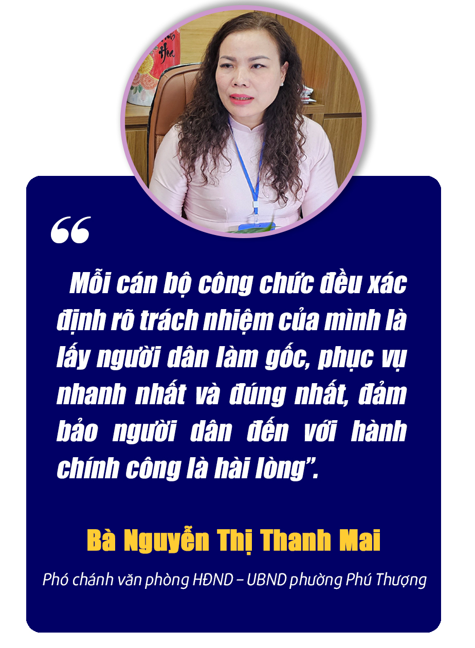 Theo chị Nguyễn Thị Thanh Mai, Phó chánh văn phòng HĐND - UBND phường Phú Thượng, mỗi cán bộ, công chức của phường luôn mang tinh thần sẵn sàng đổi mới, học hỏi, tự trau dồi, cập nhật kiến thức, thành thạo nhiều phần mềm khác nhau để đáp ứng yêu cầu nhiệm vụ, phục vụ nhanh nhất và đúng nhất, bảo đảm người dân đến với hành chính công là hài lòng. Mỗi người giờ đây đã ý thức được trách nhiệm của mình trong thời đại số là phải trang bị cho bản thân không chỉ năng lực chuyên môn mà còn kiến thức, kỹ năng số cùng các kỹ năng mềm để phục vụ người dân được tốt hơn.