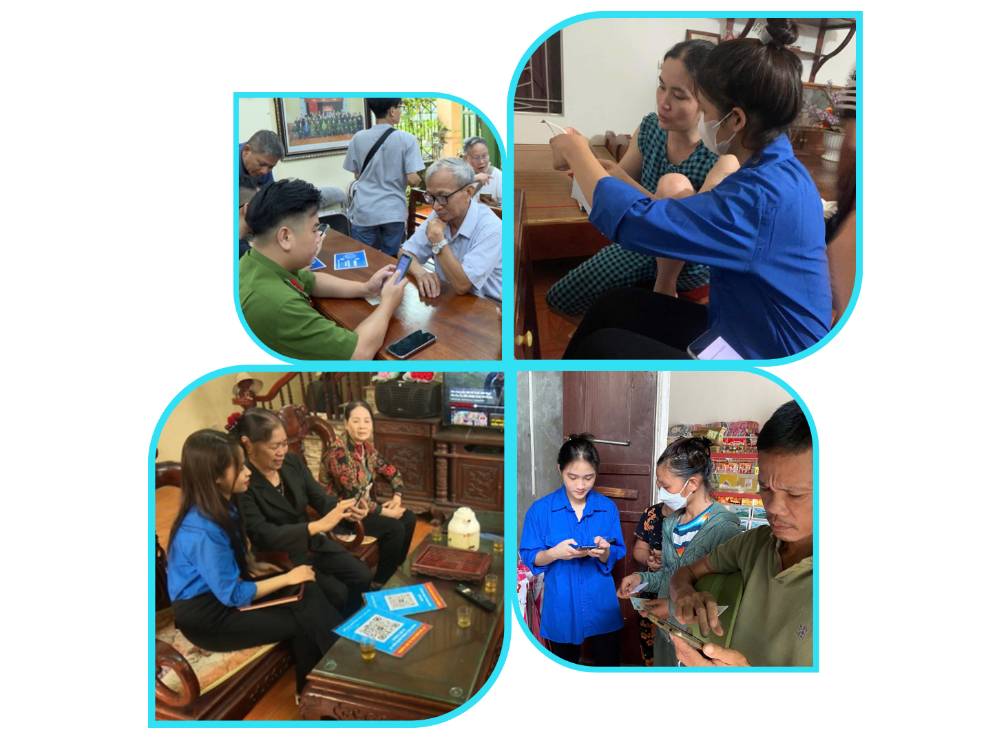 Trong khi đó, ở nhiều thôn, xóm, mô hình “Tổ chuyển đổi số cộng đồng” trở thành cầu nối, “cánh tay nối dài” của chính quyền địa phương, giúp hiện thực hóa mục tiêu xây dựng thành phố thông minh, hiện đại. Mỗi “Tổ chuyển đổi số cộng đồng” gồm 6-10 thành viên, với nòng cốt là cán bộ đoàn thanh niên, công an xã, tổ trưởng tổ dân phố, chi hội phụ nữ... kiên trì “đi từng ngõ, gõ từng nhà” để “cầm tay chỉ việc”, đảm bảo không ai bị bỏ lại phía sau trong hành trình số này.