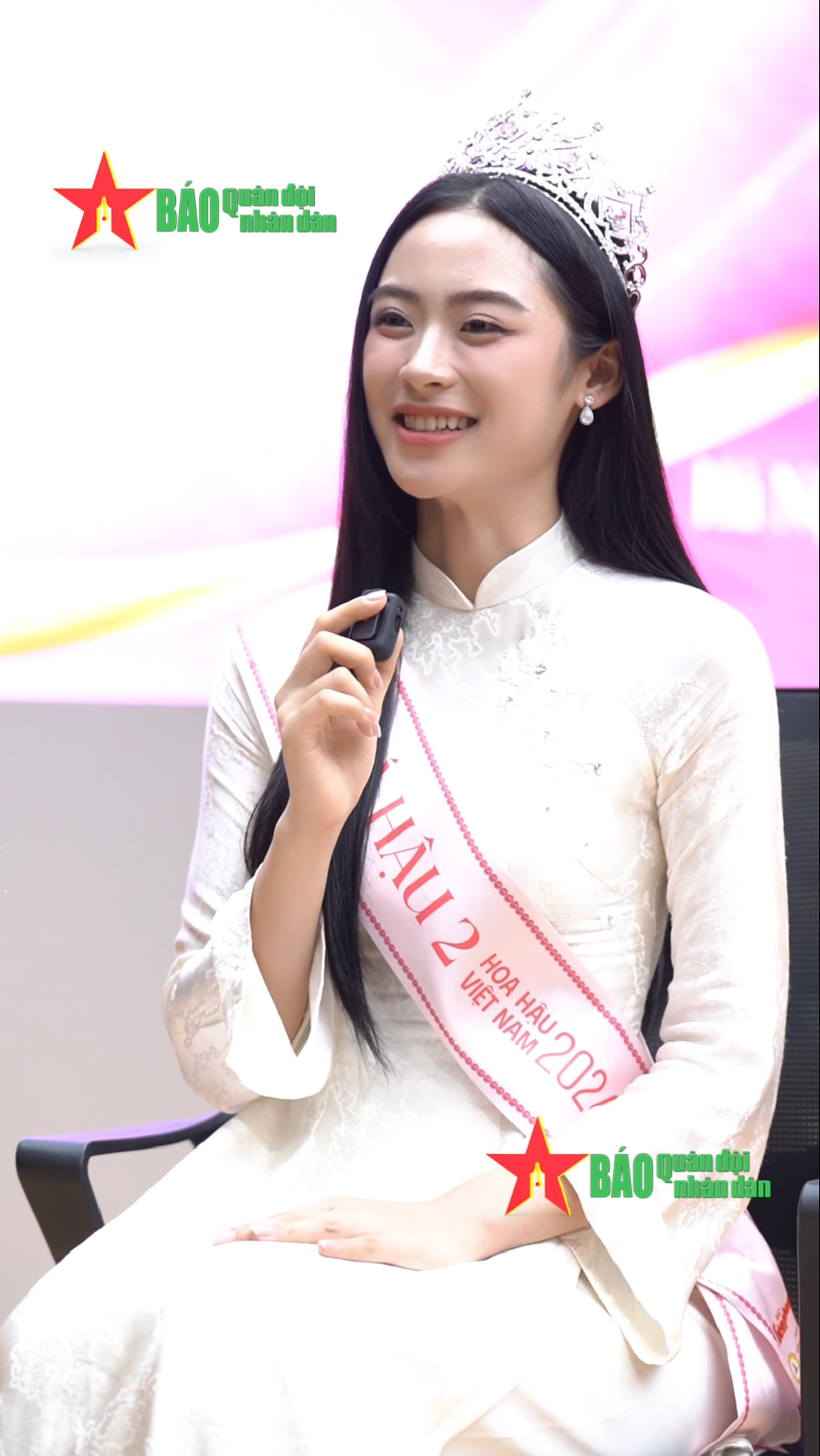 Á hậu 2 Hoa hậu Việt Nam 2024 Nguyễn Thị Vân Nhi chia sẻ với phóng viên Báo Quân đội nhân dân về: Nếu một ngày được làm chiến sĩ