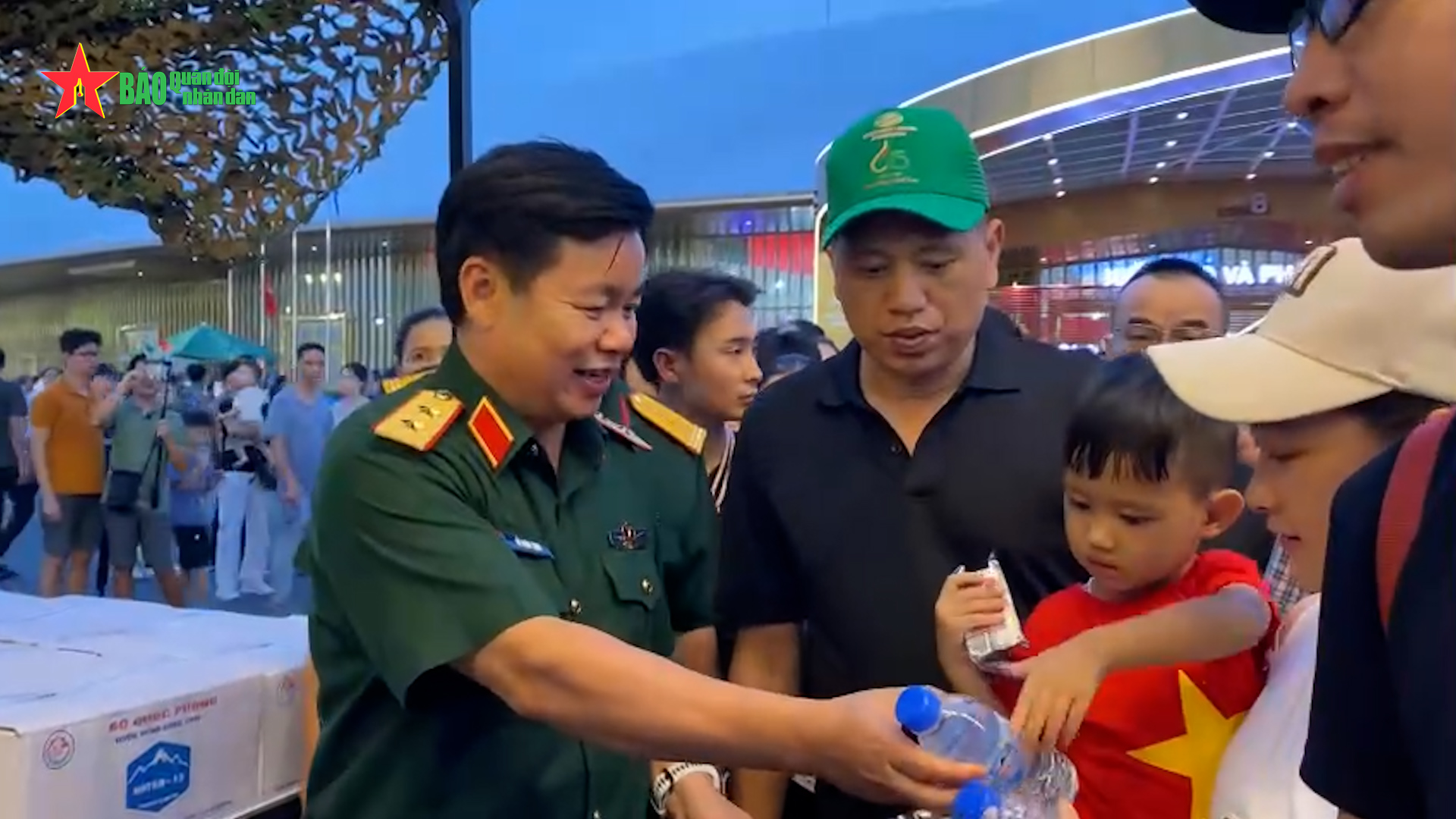Chiều 31-8, Trung tướng Đỗ Xuân Tụng, Phó chủ nhiệm Tổng cục Chính trị Quân đội nhân dân Việt Nam đã cùng với bộ đội phát nước và lương khô cho nhân dân đến tham quan tại Triển lãm thành tựu đất nước.