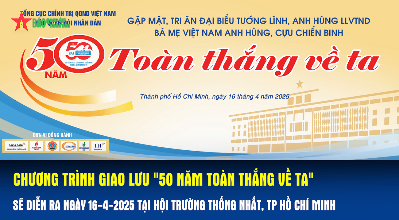 Chương trình giao lưu "50 năm toàn thắng về ta" sẽ diễn ra ngày 16-4-2025 tại Hội trường Thống Nhất, TP Hồ Chí Minh.