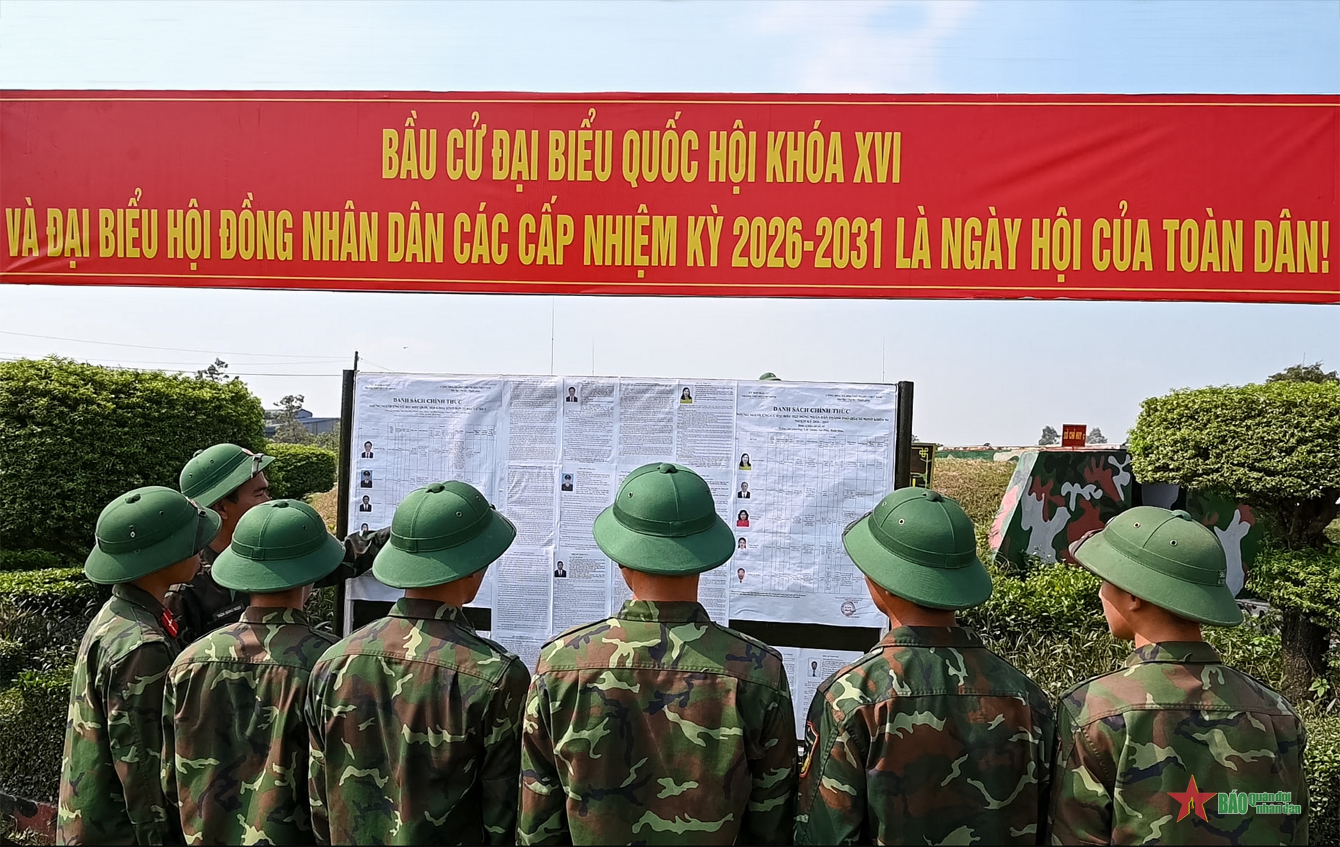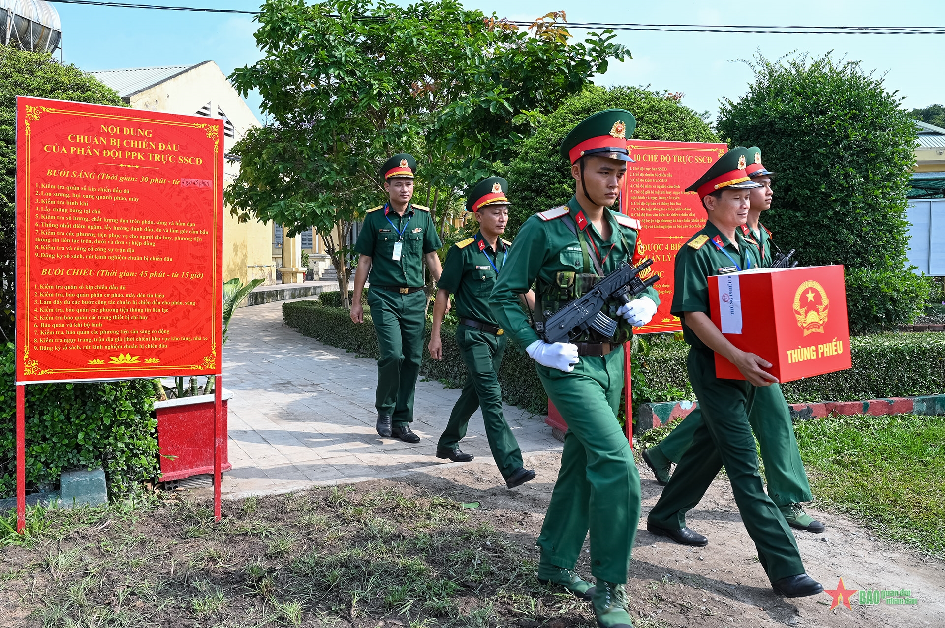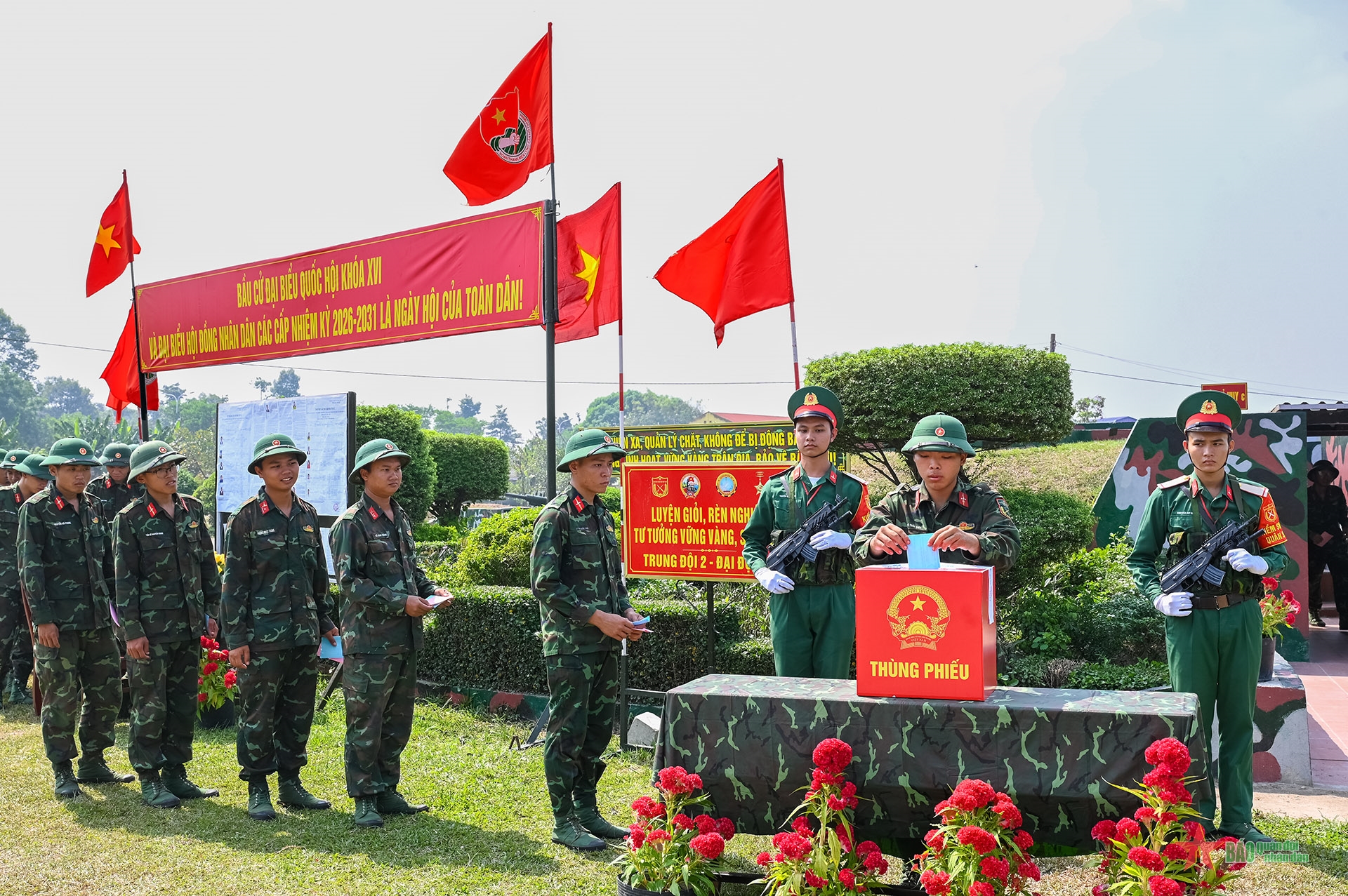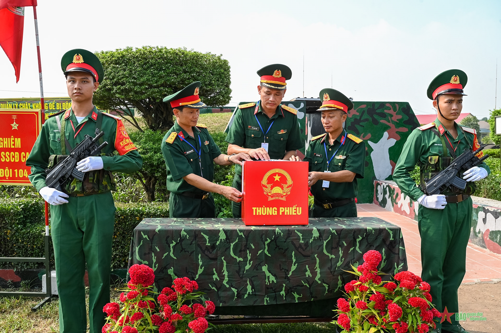 Tại trận địa, khu vực bố trí bầu cử được đơn vị chuẩn bị đầy đủ băng rôn, khẩu hiệu, bảng niêm yết danh sách ứng cử viên, bàn đối chiếu danh sách cử tri, phát phiếu bầu, bàn đóng dấu… đảm bảo công tác bầu cử được tiến hành đúng theo thể lệ, nguyên tắc bầu cử.