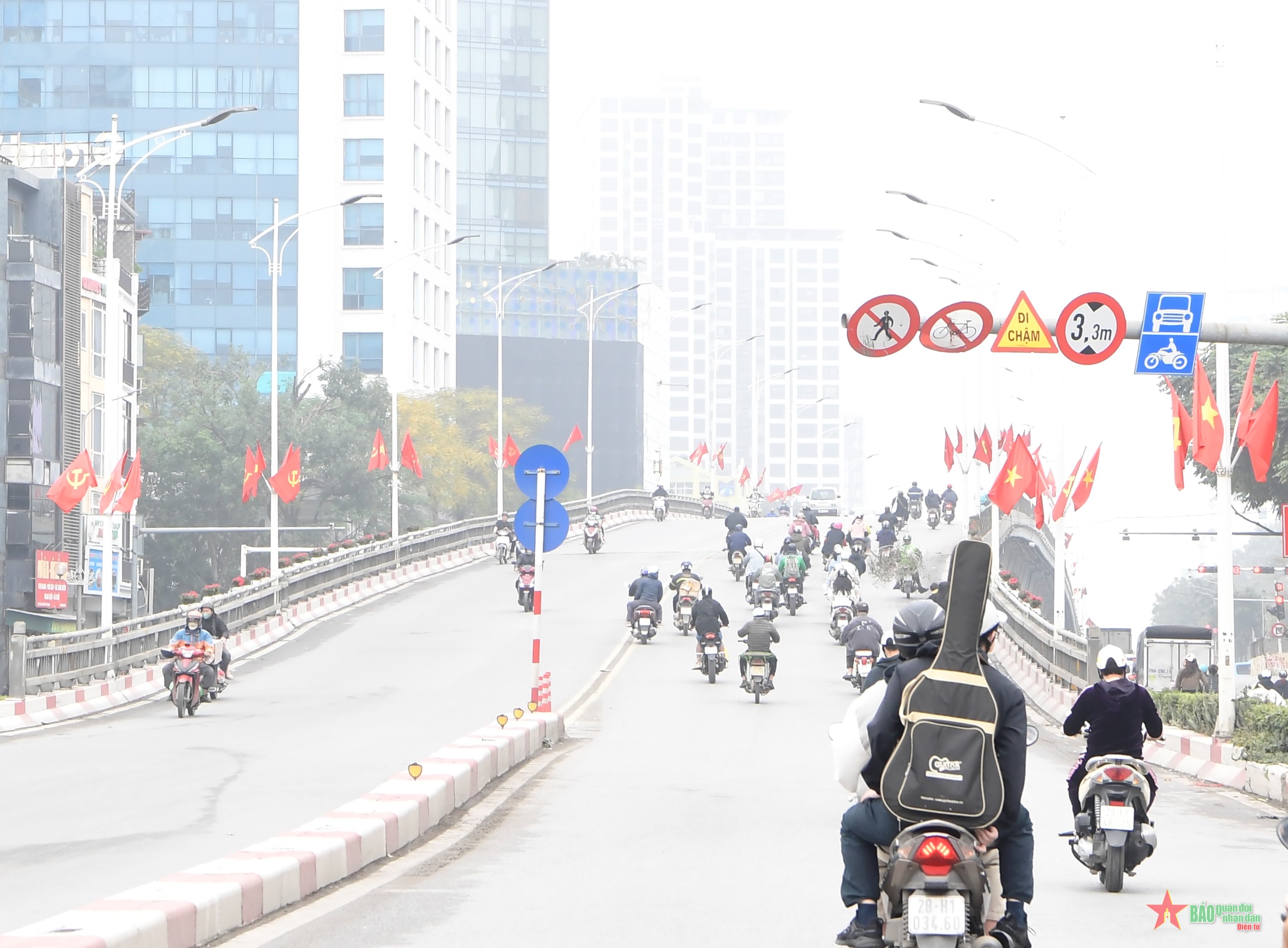 Trên các đoạn cầu vượt là cờ Tổ quốc và cờ Đảng bay phấp phới.