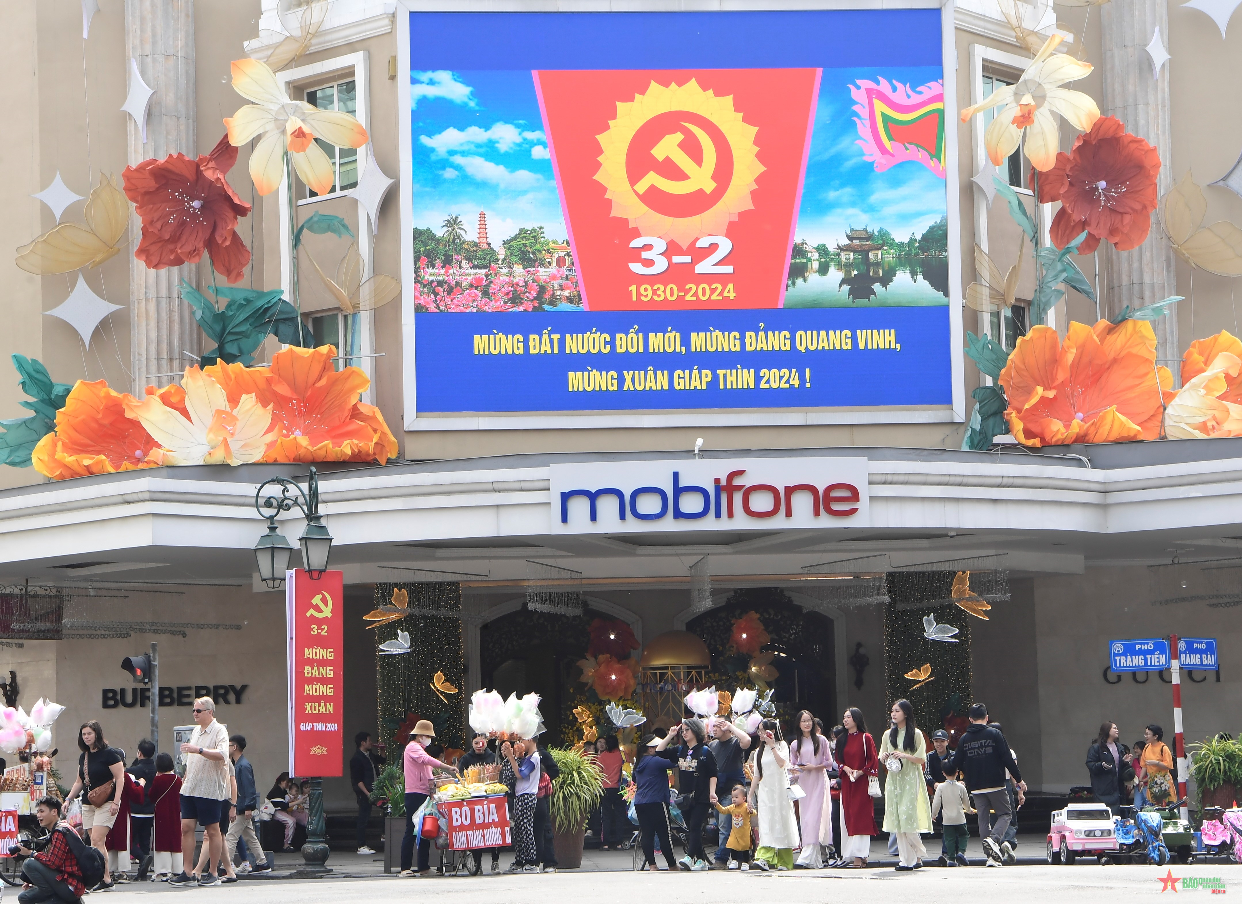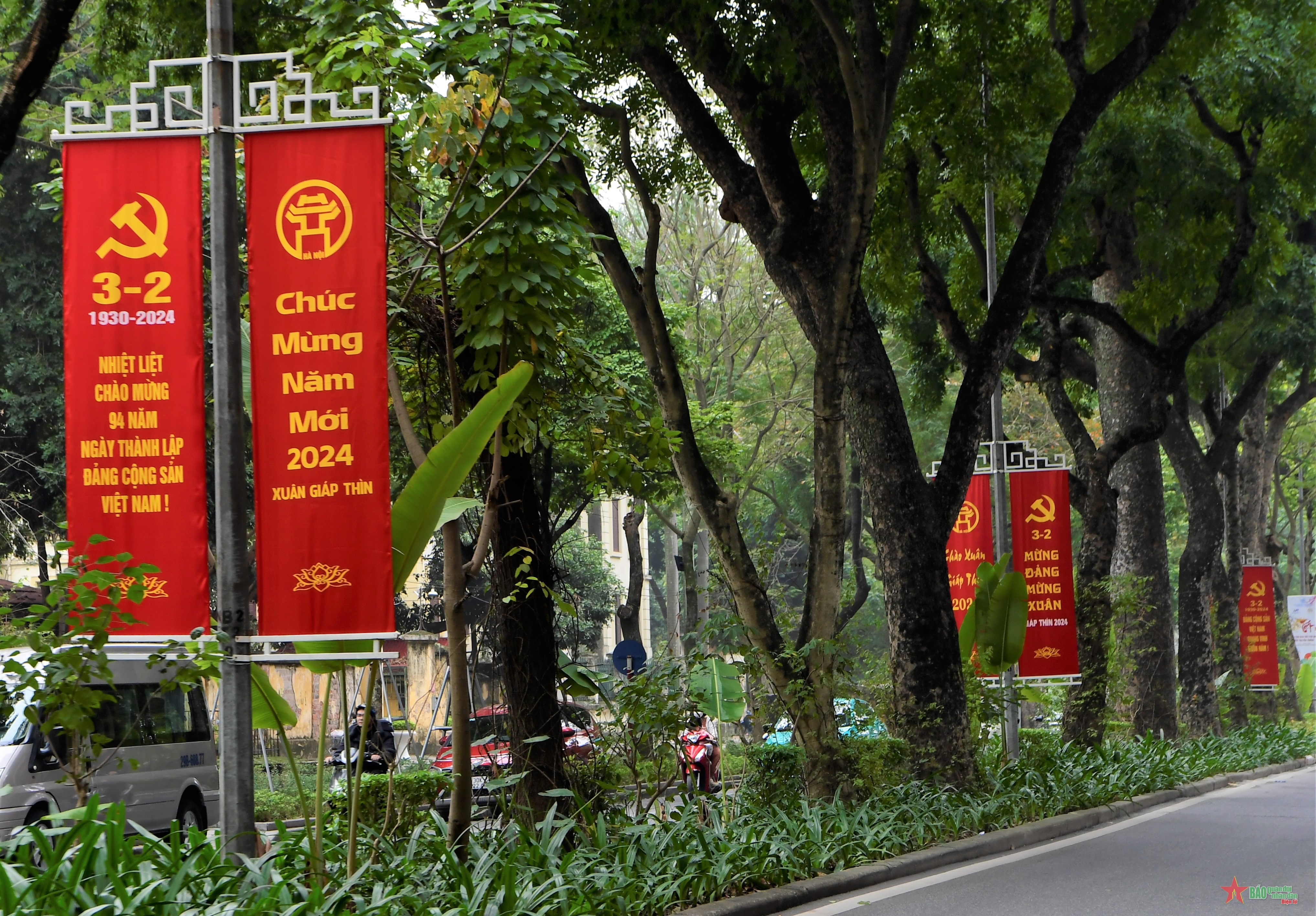Hướng tới kỷ niệm 94 năm Ngày thành lập Đảng Cộng sản Việt Nam (3-2-1930 / 3-2-2024) và chào mừng Xuân Giáp Thìn năm 2024, khắp phố phường Hà Nội được trang hoàng rực rỡ.