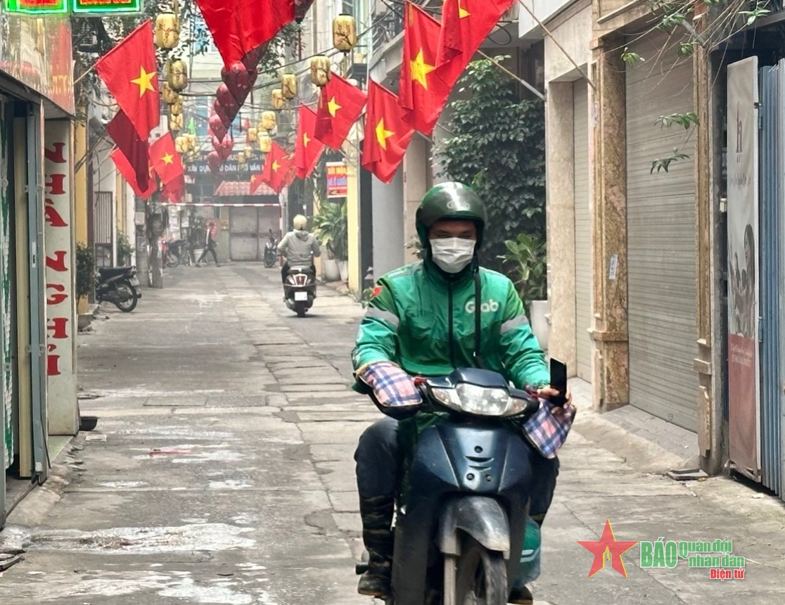 Tại các con ngõ nhỏ, ngoài mặt đường lớn người dân treo cờ Tổ quốc trước nhà.