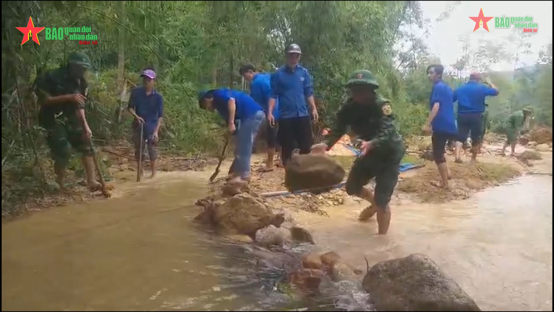 Mặc dù nước lũ đã rút nhưng cán bộ chiến sĩ BĐBP Nghệ An vẫn tiếp tục ở lại giúp người dân khắc phục hậu quả sau mưa lũ, từng bước vượt qua khó khăn, gây dựng lại cuộc sống.