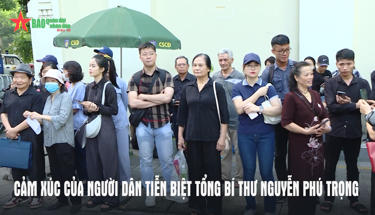 Hôm nay 25-7, người dân từ khắp nơi đã có mặt tại khu vực Nhà tang lễ Quốc gia (số 5 Trần Thánh Tông, Hà Nội) kiên nhẫn chờ đợi vào viếng Tổng Bí thư Nguyễn Phú Trọng. Từ biên giới, hải đảo, nơi vùng cao, vùng sâu, vùng xa hay ở những vùng đất châu Phi xa xôi, các lực lượng treo cờ rủ Quốc tang, tưởng nhớ Tổng Bí thư Nguyễn Phú Trọng...