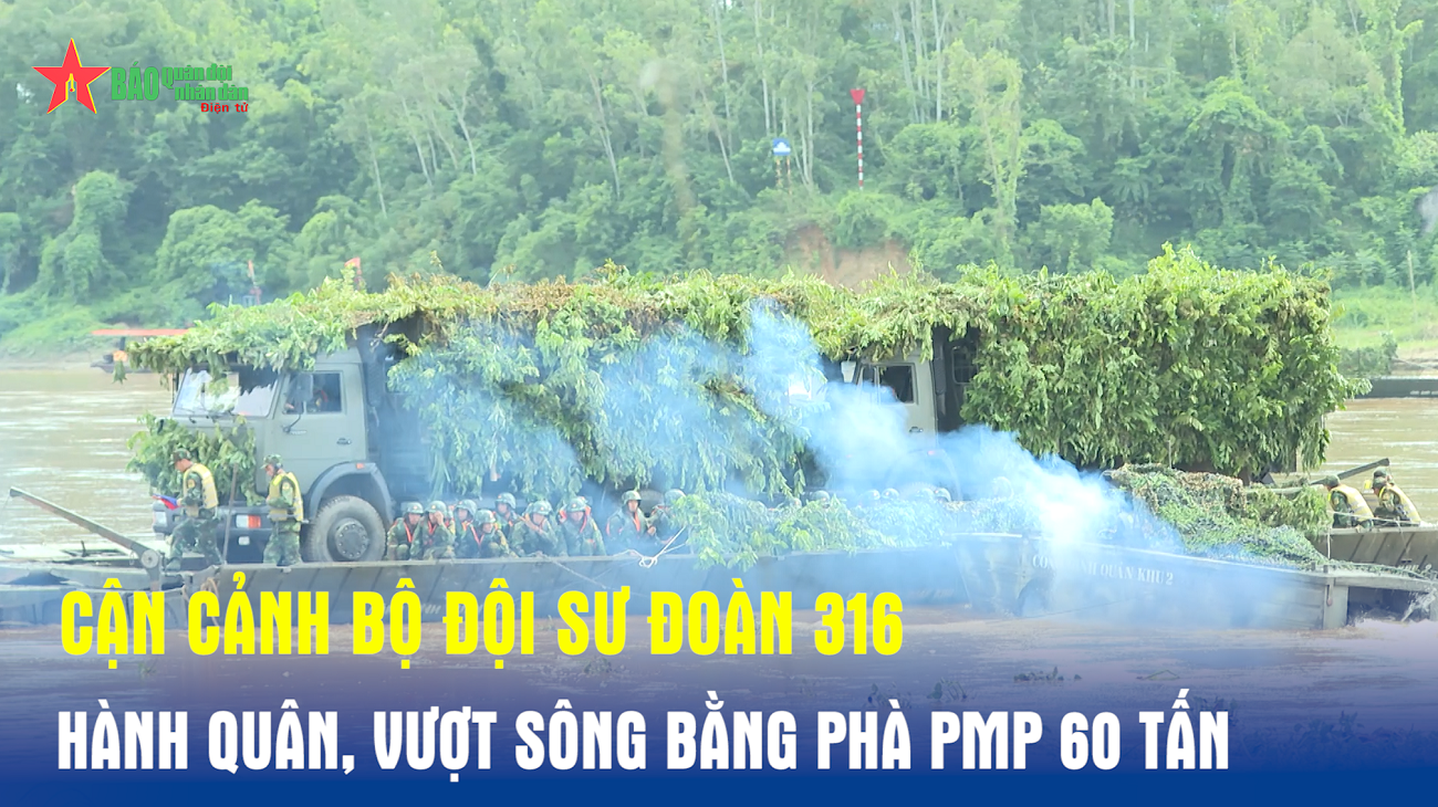 Vượt sông bằng phà PMP 60 tấn là điểm mới trong diễn tập năm nay của Sư đoàn 316, Quân khu 2. Cuộc diễn tập được chia làm 4 giai đoạn: Chuyển trạng thái sẵn sàng chiến đấu, tổ chức chuẩn bị và thực hành quân vào khu vực tập kết chiến đấu; tổ chức chuẩn bị chiến đấu; thực hành chiến đấu và bắn đạn thật.