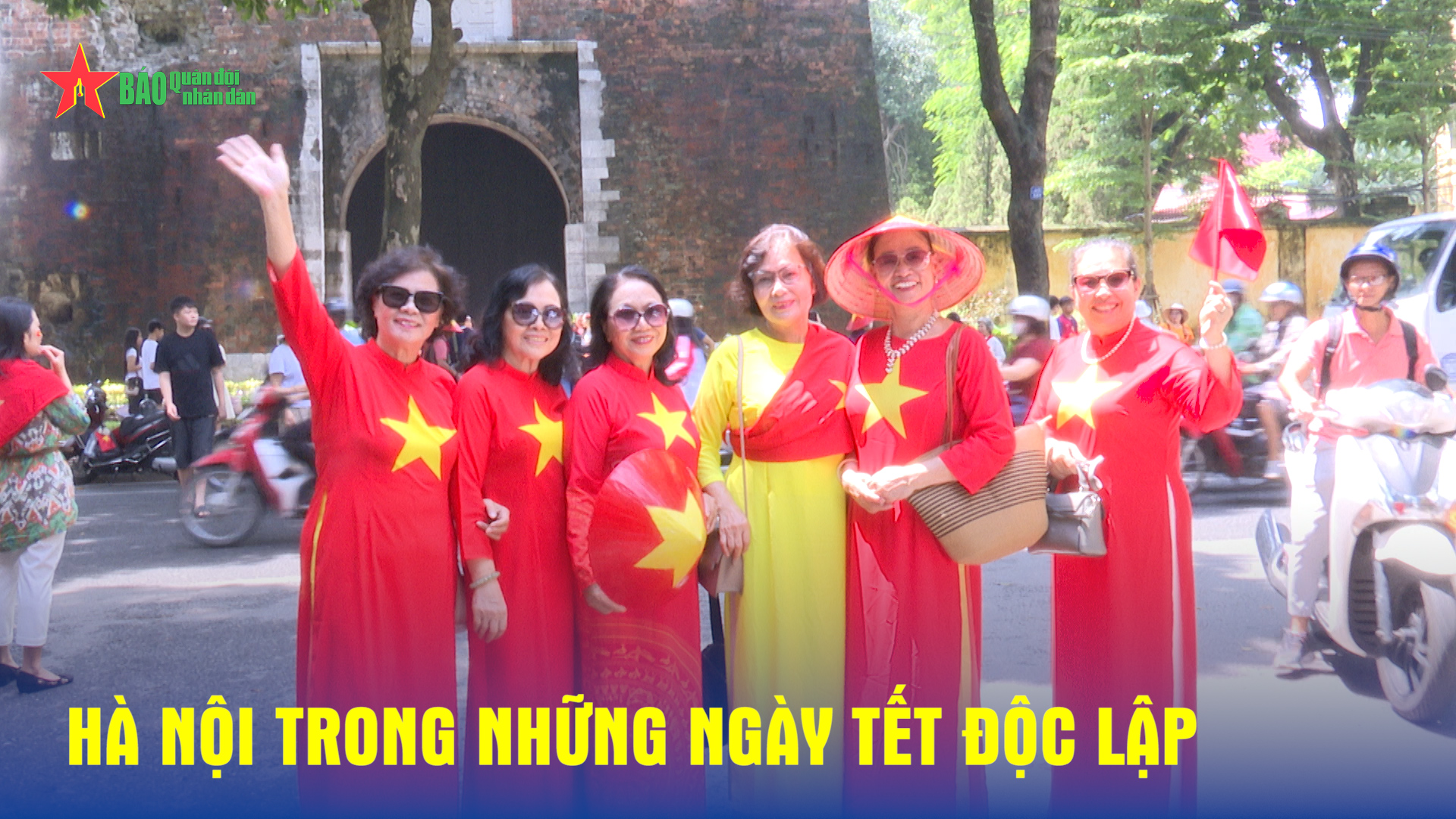 Hà Nội trong những ngày lịch sử của đất nước, rực rỡ cờ hoa, pano, khẩu hiệu chào mừng 80 năm Cách mạng Tháng Tám và Quốc khánh 2-9. Đi trên những tuyến phố trung tâm, chúng ta có thể dễ dàng bắt gặp hình ảnh người dân và du khách check-in với cờ Tổ quốc.