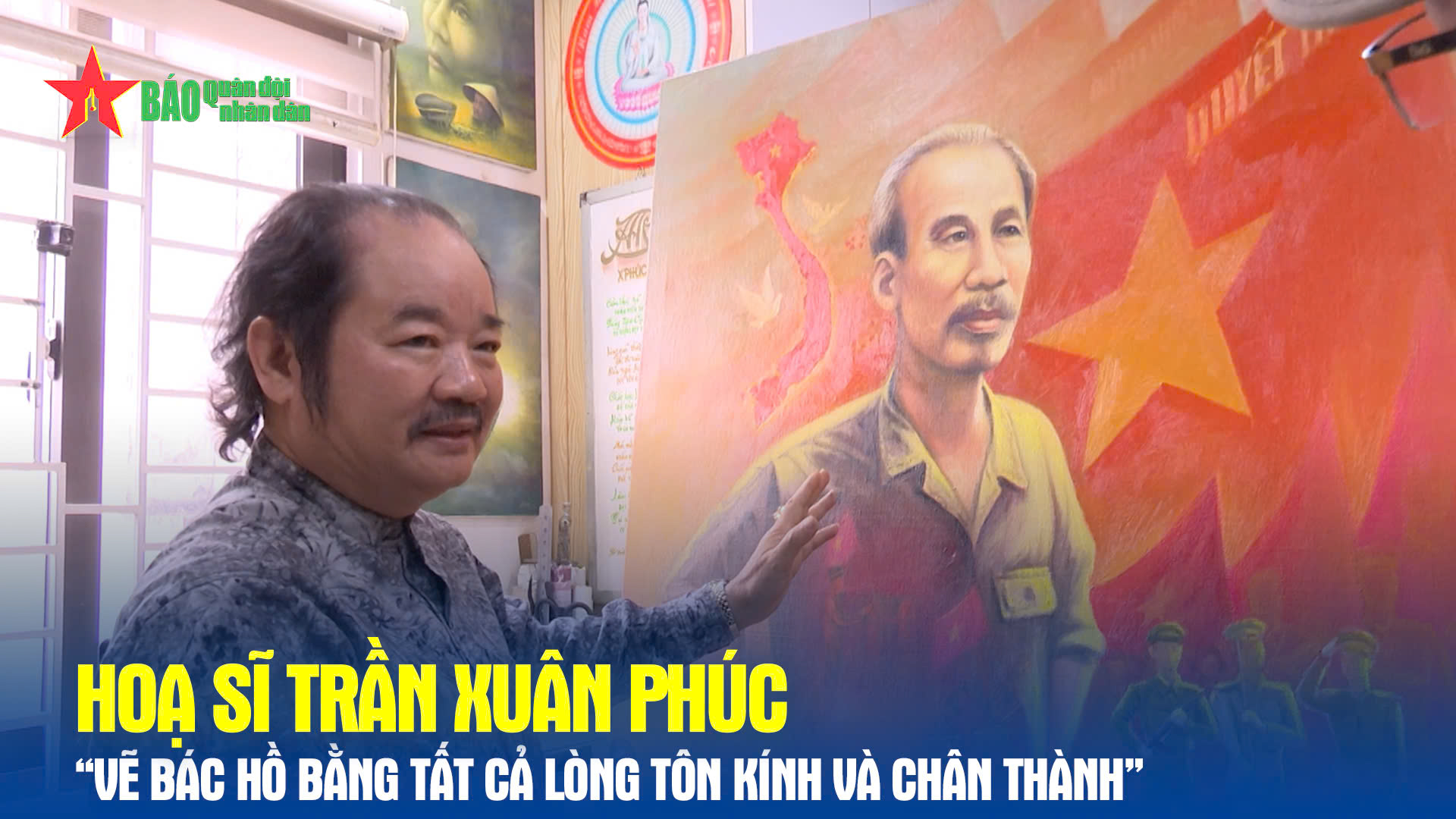 Họa sĩ Trần Xuân Phúc đã dành trọn tài năng và tâm huyết của mình để tái hiện hình ảnh Người qua từng bức tranh đầy cảm xúc. Hôm nay, chúng ta sẽ cùng bước vào không gian nghệ thuật ấy, nơi từng nét vẽ kể câu chuyện về một vĩ nhân.