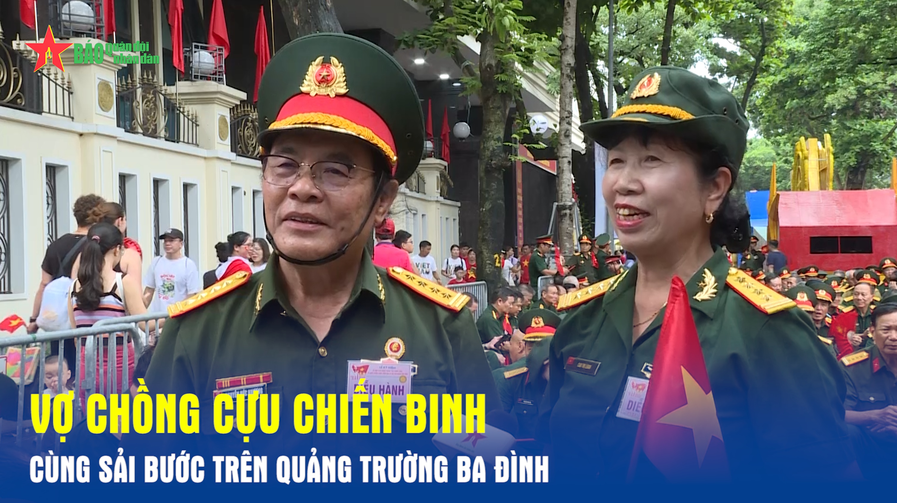 Hơn 40 năm trước, hai người gặp nhau, cùng là bộ đội, cùng trong quân chủng, cùng một quê hương. Họ đã nên duyên từ tình đồng chí. Và hôm nay, giữa Quảng trường Ba Đình lịch sử, họ lại cùng bước đi trong đội hình cựu chiến binh – bằng tình yêu đã gắn bó hơn nửa đời người, và bằng niềm tự hào của những người chiến sĩ năm xưa.