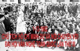 Ngày 1-12-1962, Chủ tịch Hồ Chí Minh đến dự và nói chuyện với Đại hội Văn nghệ toàn quốc lần thứ III. Phân tích thực trạng văn nghệ dưới thời thuộc Pháp, Người chỉ rõ: Khi dân tộc bị áp bức thì văn nghệ cũng mất tự do. Văn nghệ muốn tự do thì phải tham gia cách mạng.