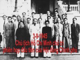 Ngày 3-9-1945: Chủ tịch Hồ Chí Minh chủ trì phiên họp đầu tiên của Hội đồng Chính phủ, trình bày những nhiệm vụ cấp bách của Nhà nước Việt Nam Dân chủ Cộng hòa, gồm 6 vấn đề cấp bách hơn cả.