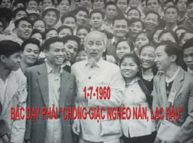 Ngày 1-7-1960, nói chuyện tại Đại hội Đảng bộ và các cơ quan Dân, Chính, Đảng Trung ương, Bác chỉ rõ: Tuy cuộc kháng chiến chống ngoại xâm đã xong, nhưng chúng ta còn phải tiếp tục kháng chiến chống một giặc khác, đó là giặc nghèo nàn, lạc hậu.