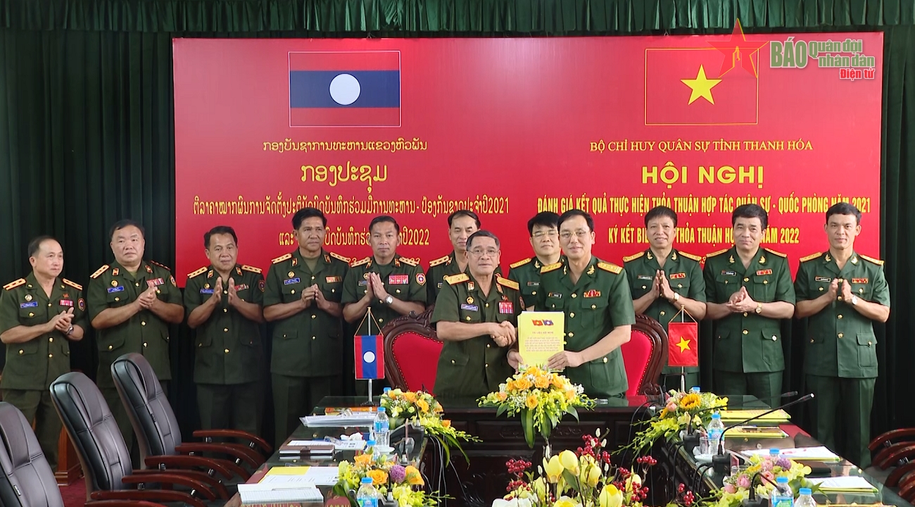 Ngày 23-5, tại Thanh Hóa, Bộ CHQS tỉnh Thanh Hóa tổ chức hội đàm, ký kết hợp tác thực hiện nhiệm vụ quân sự, quốc phòng năm 2022 với Bộ CHQS tỉnh Hủa Phăn (Lào).