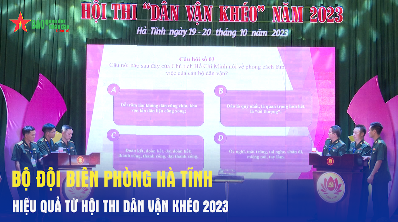 Vừa qua, Bộ đội Biên phòng tỉnh Hà Tĩnh đã tổ chức thành công Hội thi dân vận khéo năm 2023. Đây là dịp để các đơn vị giao lưu, học hỏi nâng cao kiến thức, kinh nghiệm, kỹ năng và phương pháp tiến hành công tác dân vận khéo tại cơ sở.