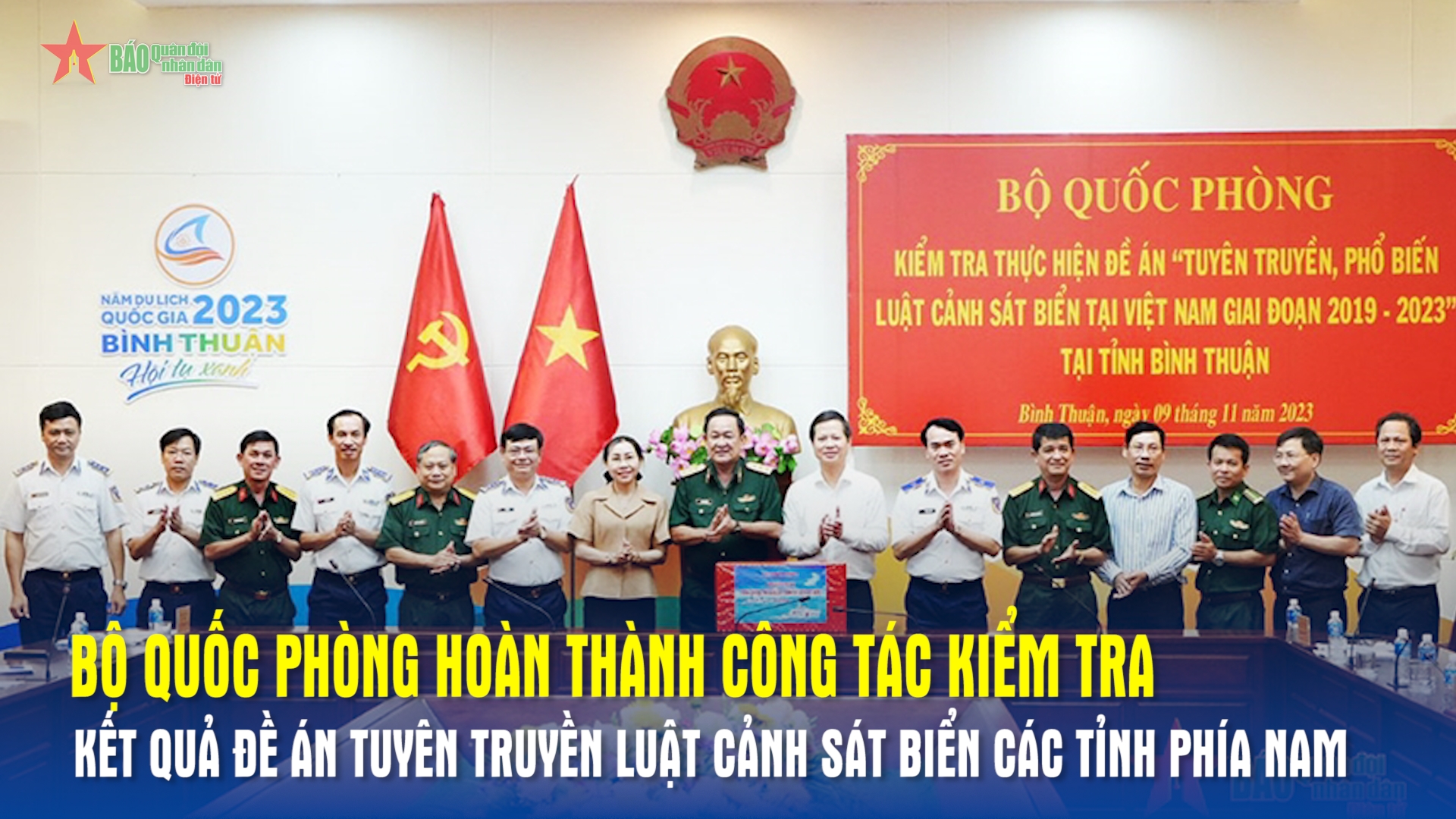 Từ ngày 8 đến 17 tháng 11, đoàn công tác Bộ Quốc phòng đã tiến hành kiểm tra kết quả thực hiện Đề án "Tuyên truyền, phổ biến Luật Cảnh sát biển Việt Nam giai đoạn 2019 - 2023" tại các tỉnh khu vực phía Nam. Sau hơn 10 ngày kiểm tra và làm việc, Thượng tướng Võ Minh Lương, Trưởng đoàn công tác đã ghi nhận và đánh giá cao kết quả các địa phương đạt được trong thực hiện Đề án “Tuyên truyền, phổ biến Luật Cảnh sát biển Việt Nam giai đoạn 2019 - 2023”.