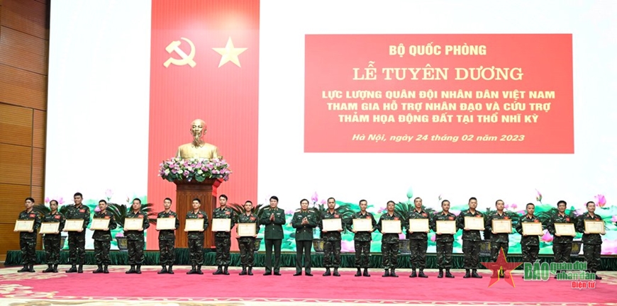 Ngày 24-2, tại Hà Nội, Bộ Quốc phòng tổ chức Lễ tuyên dương lực lượng Quân đội nhân dân Việt Nam tham gia hỗ trợ nhân đạo và cứu trợ thảm họa động đất tại Thổ Nhĩ Kỳ.