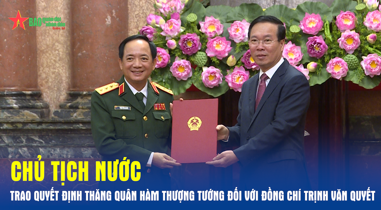 Sáng 8-8, tại Phủ Chủ tịch, Chủ tịch nước Võ Văn Thưởng chủ trì Lễ công bố, trao quyết định thăng quân hàm từ cấp Trung tướng lên cấp Thượng tướng đối với đồng chí Trịnh Văn Quyết.