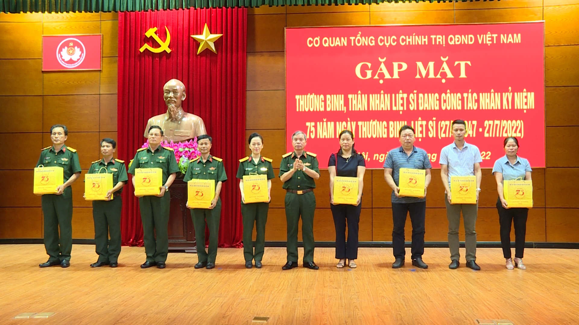 Nhân kỷ niệm 75 năm Ngày Thương binh - Liệt sĩ, ngày 15-7, tại Hà Nội, diễn ra buổi gặp mặt thương binh, thân nhân liệt sĩ đang công tác trong Cơ quan Tổng cục Chính trị Quân đội nhân dân Việt Nam.