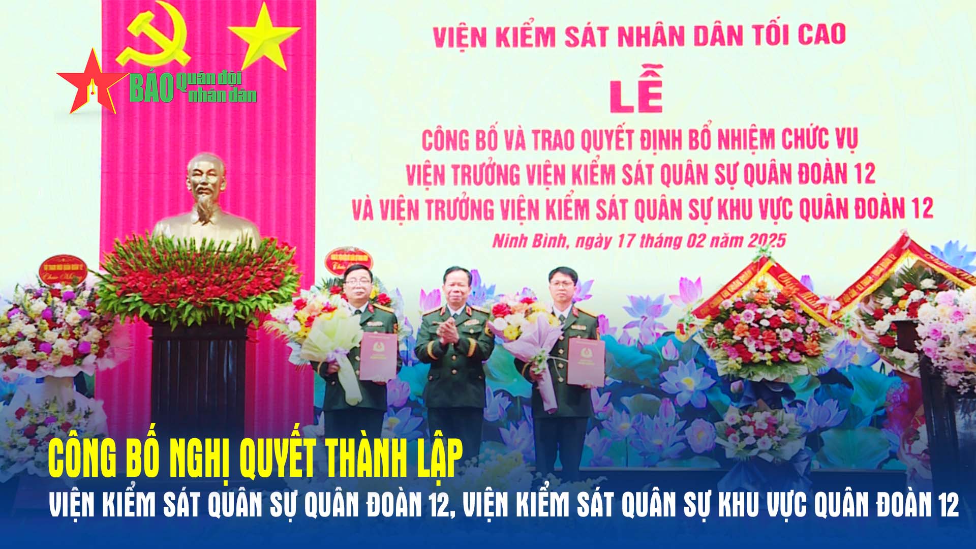 Ngày 17-2, tại Ninh Bình, Quân đoàn 12 tổ chức Lễ công bố và trao quyết định bổ nhiệm chức vụ cán bộ; Nghị quyết thành lập Viện Kiểm sát Quân sự Quân đoàn 12, Viện Kiểm sát quân sự khu vực Quân đoàn 12. Trung tướng Tạ Quang Khải, Phó viện trưởng Viện Kiểm sát Nhân dân tối cao, Viện trưởng Viện Kiểm sát Quân sự Trung ương dự buổi lễ. Thiếu tướng Trương Mạnh Dũng, Tư lệnh Quân đoàn 12 chủ trì buổi lễ.